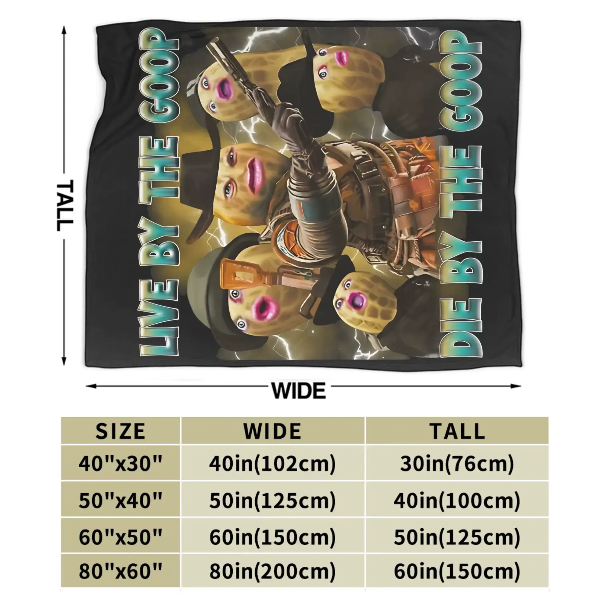 ·Title: Live By The Goop Die By The Goop Funny Peanut Meme Print Flannel Blanket Cooling Blanket Homegoods Soft Cozy For Bedroom Living Room Sofa Couch For Meme Lovers Teens Adults Perfect Gift