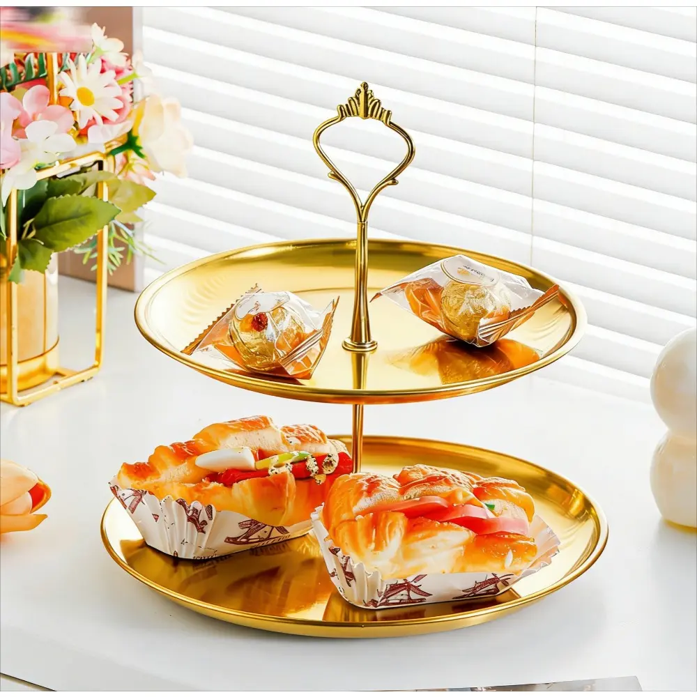 Stainless Steel Multi-layer Cupcake Stand, Home Double-layer Fruit Tray & Snack Serving Platter for Living Room Coffee Table