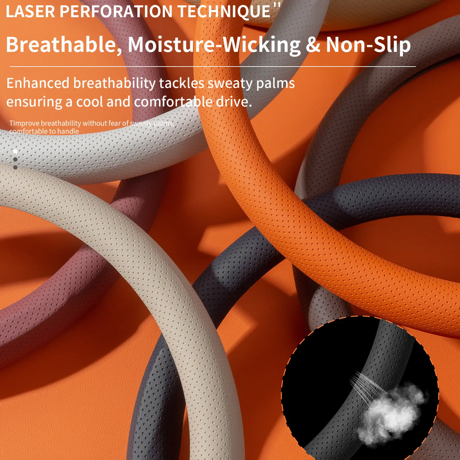 ·Ultra-thin and ultra-lightweight, this nappa leather cover protects the wheel from scratches and sweat. It covers 95% of the steering wheel surface, offering stylish appearance and a wonderful hand touch. Perfect alternative to traditional covers.