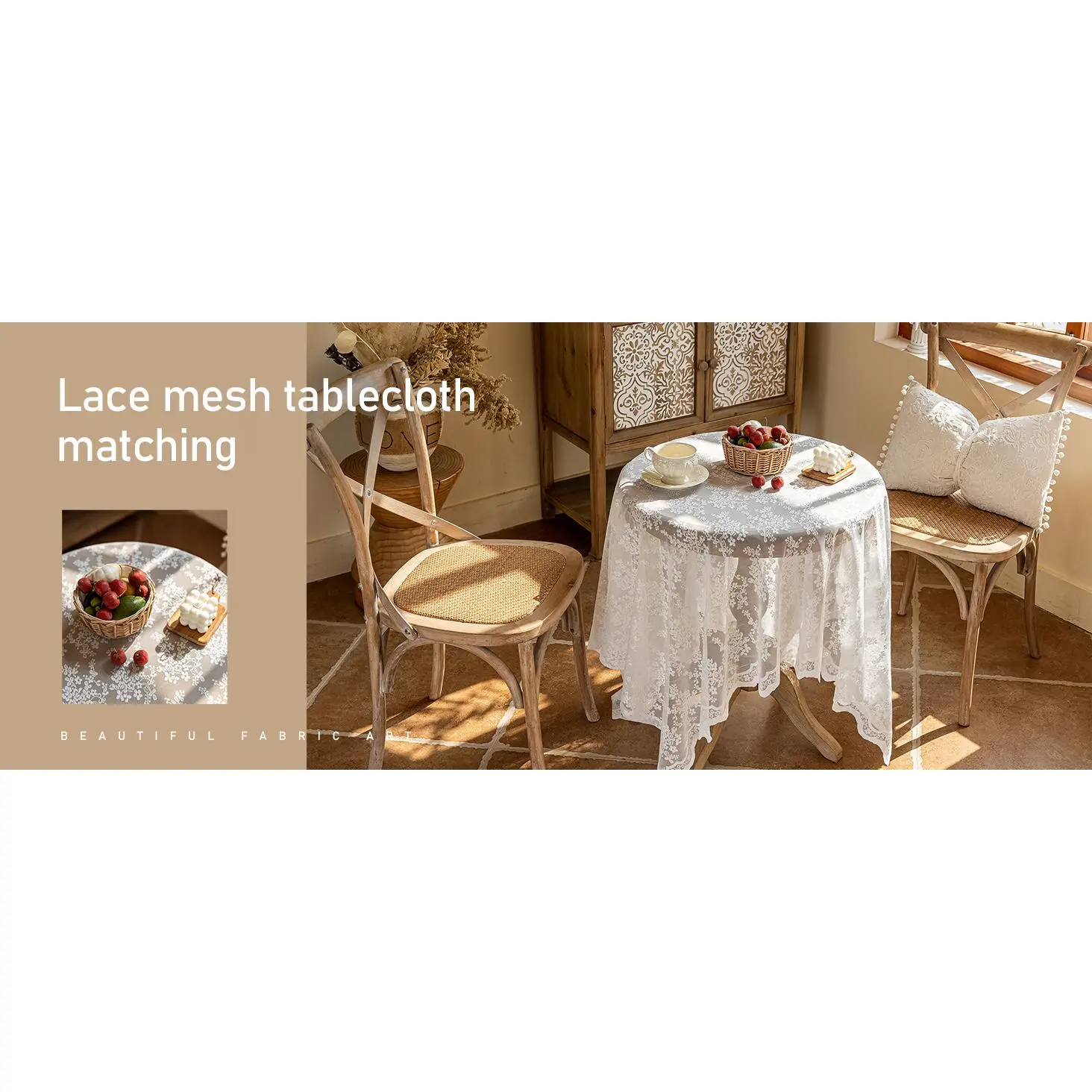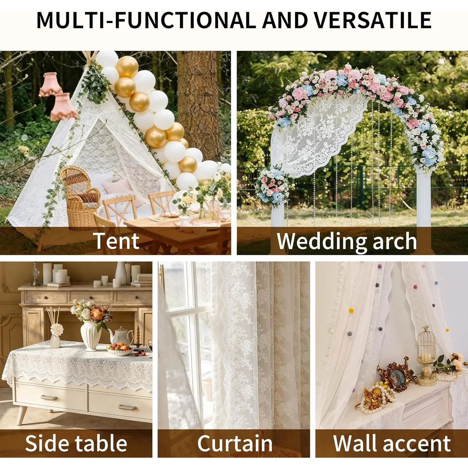 Table cloth material: Tablecloth made of lace material with embroidered patterns on a mesh base.Spring tablecloth combines softness and breathability with a delicate, three-dimensional texture.Table cloths size: Floral tablecloth is available in various rectangular sizes, all with a uniform width of 55 inches.Table clothes lengths range from 55 inches to 118 inches, covering square to elongated rectangular specifications.Wedding table cloths design: Vintage tablecloth is characterized by its exquisite hollowed-out patterns, soft texture and retro elegant style.Elegant from a distance and exquisite up close,party tablecloth adds an artistic touch to the dining table.Lace table cloth applicable scenarios: Tea party tablecloth is an ideal choice for afternoon tea,wedding banquets,vintage cafes,birthday parties,candlelight dinners and receptions.Flower tablecloth washing and maintenance: Party table cloth suggests hand washing.Wedding decor is advisable to lay it flat in cold water and dry it in the shade. Iron it at a low temperature and avoid direct sunlight and forceful twisting
