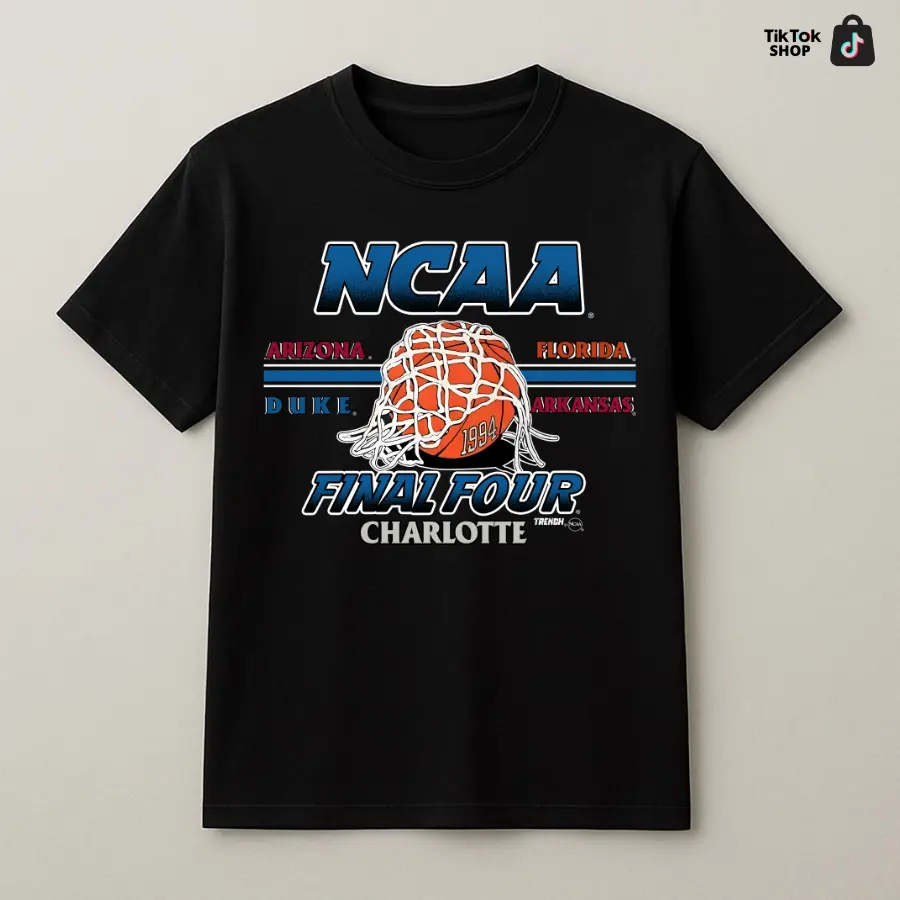 Bring classic basketball energy to your style with this vintage-inspired Final Four graphic T-shirt. Featuring a bold hoop and net design with retro typography and tournament-style layout, this tee captures the excitement and spirit of college basketball in a clean, timeless look.