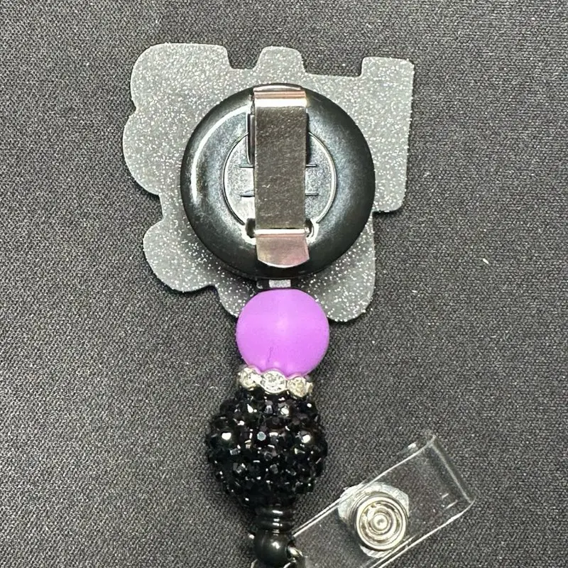 This listing is a badges reel design come with bell clip acrylic and silicone beads.