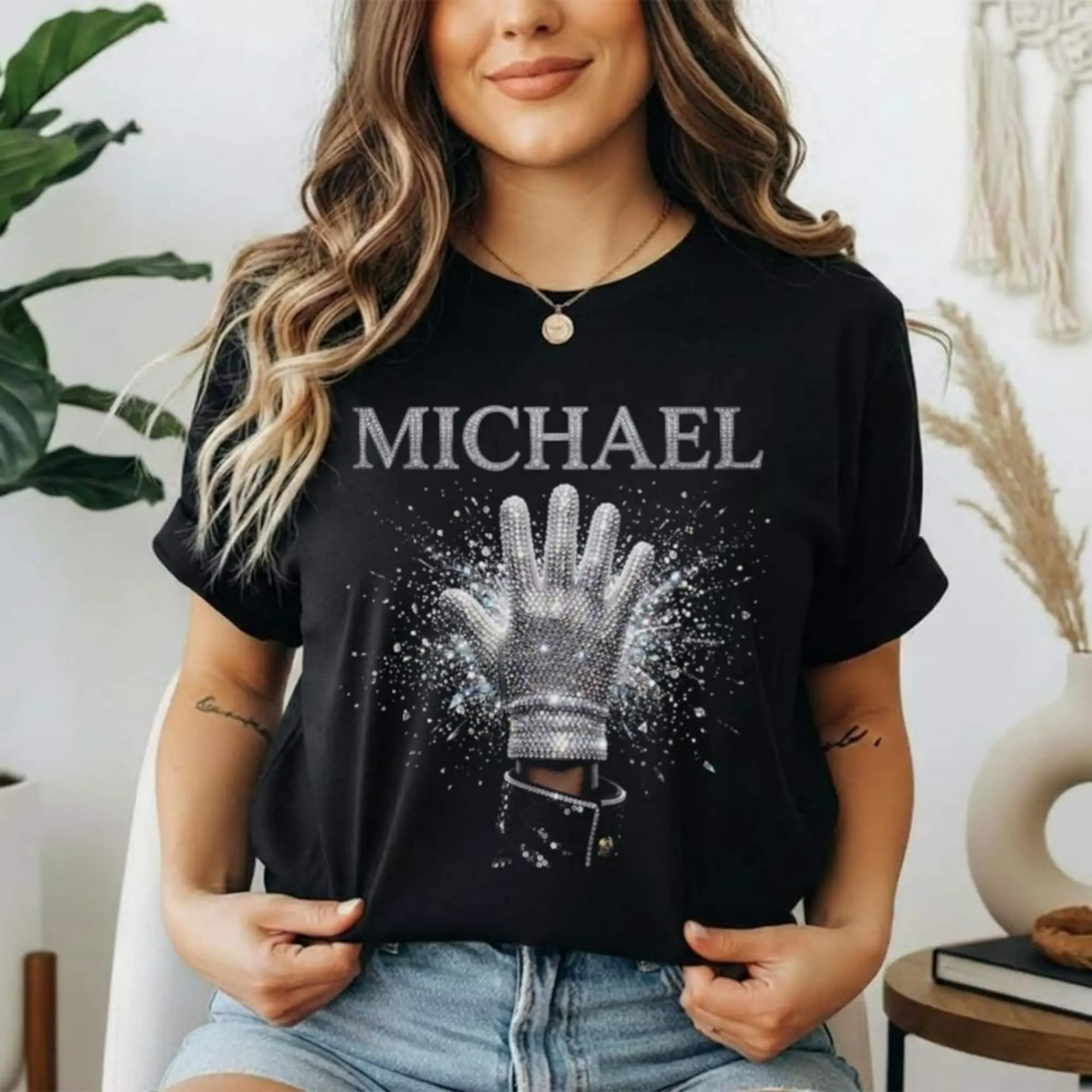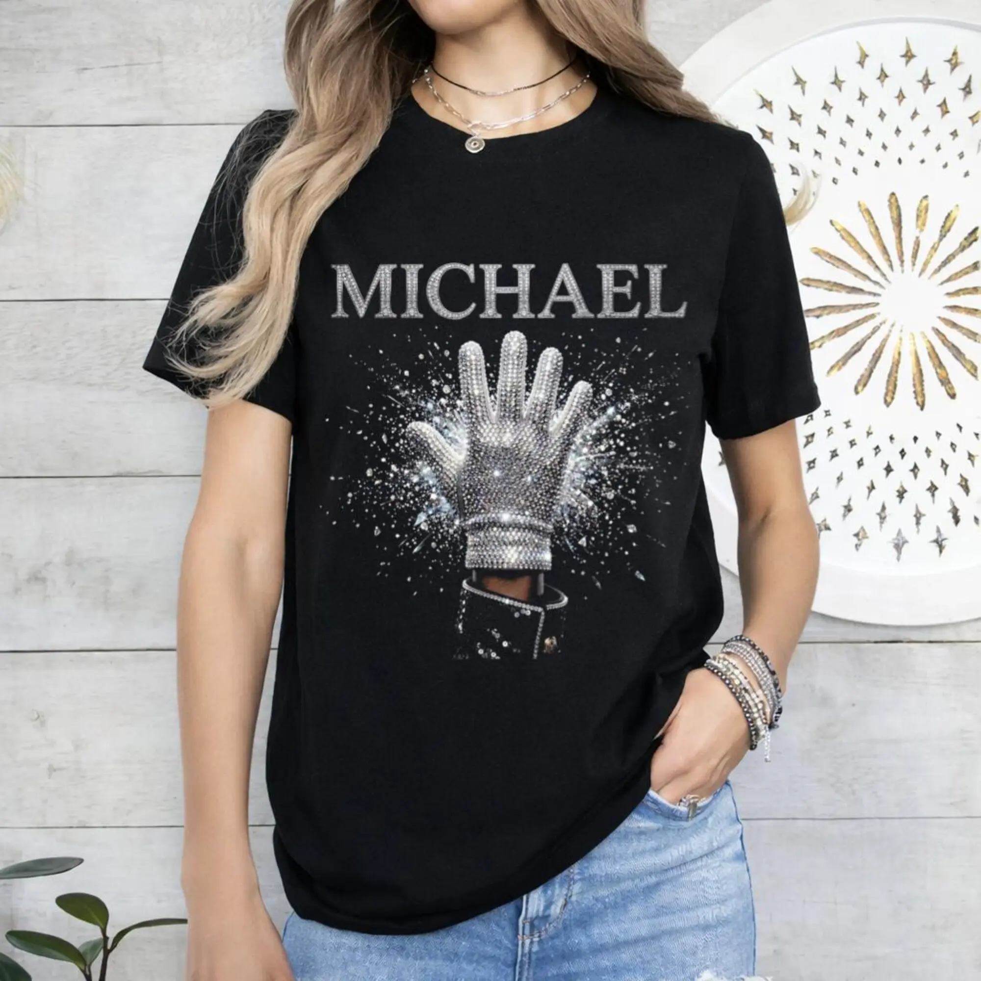 Michael Jackson RHINESTONE Glove Streetwear T-Shirt, Unisex Hip Hop Streetwear Tee
