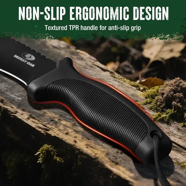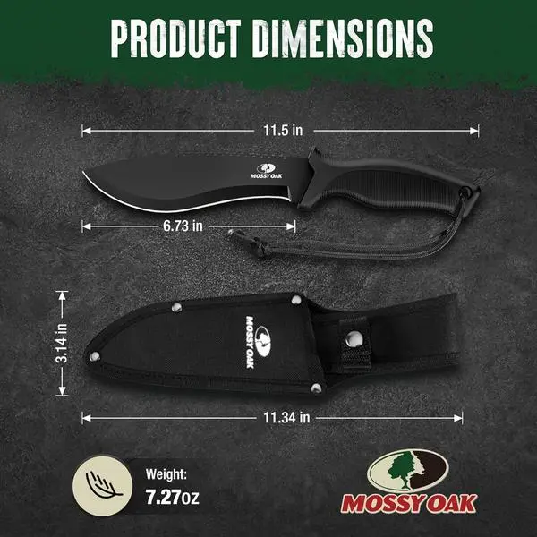 Gear up for the wild with Mossy Oak 11.5'' machete! Perfect for jungle survival, camping, hunting, and fishing. With a sharp blade and sturdy construction, it easily clears brush, cuts ropes, and digs fruit. A must-have for outdoor enthusiasts. Overall Length: 11.5''; Blade Length: 6.73''. Ideal for any outdoor adventure.