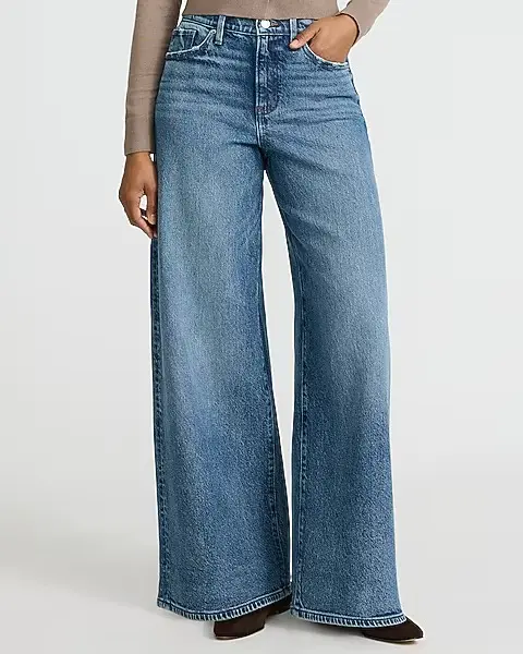 The perfect jeans for this season with a relaxed wide leg shape. Sitting at a high rise with a fitted look through the waist and hip, this medium wash denim is designed to fall straight down from the hip to give a long and lean appearance.