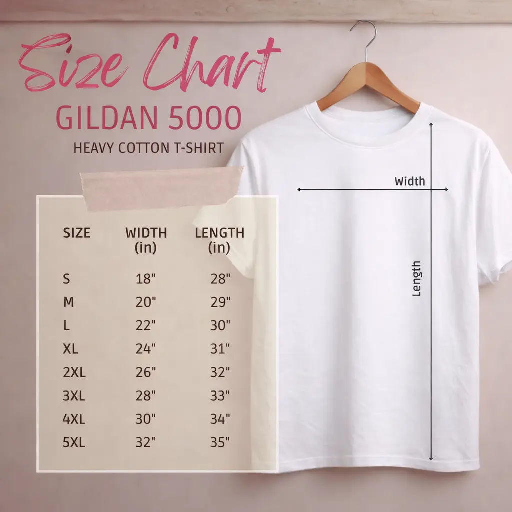 We use Gildan 5000 Heavy Cotton blanks for our prints, known for their quality, comfort, and durability: