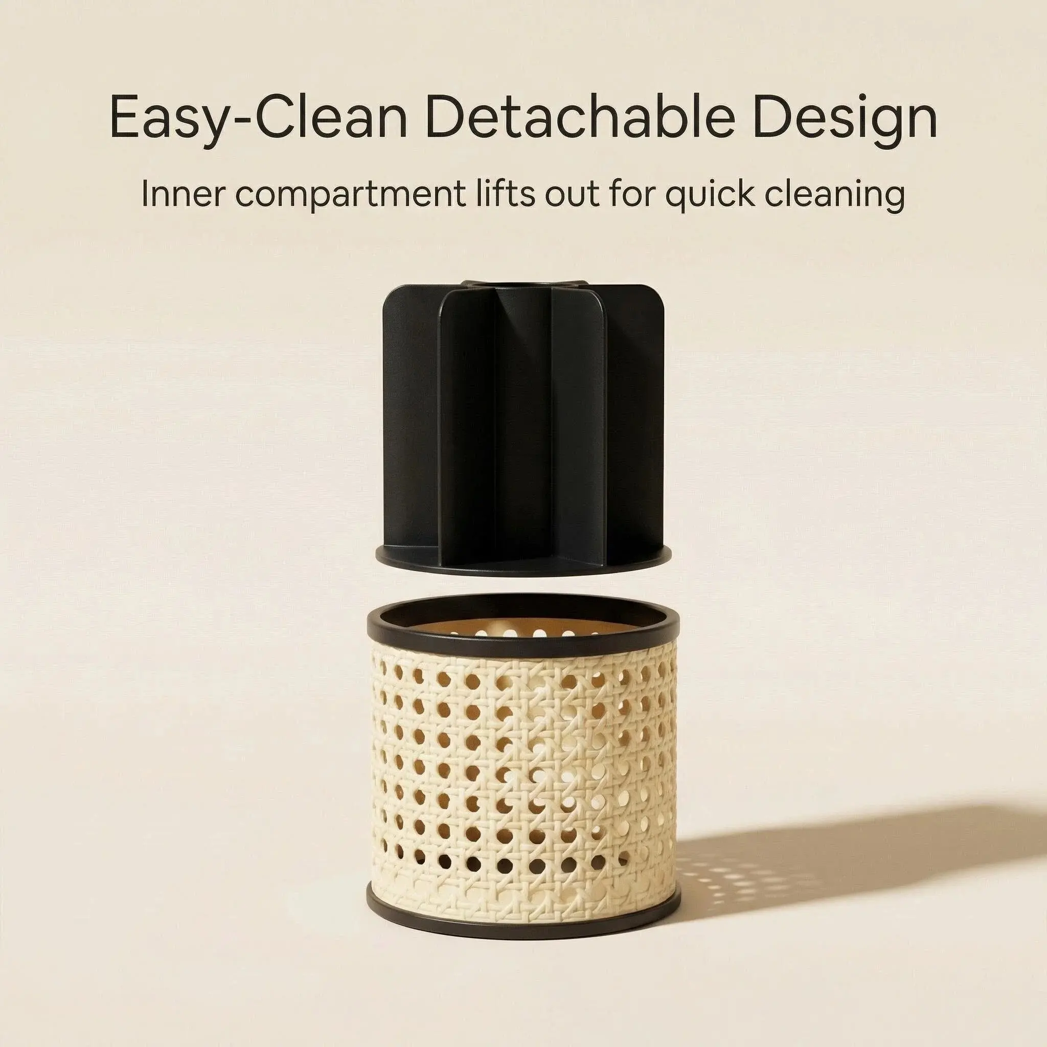 Vintage Woven Makeup Organizer, Large Capacity Rotating Desk Pen Holder, Detachable Easy Clean Compartment Brush Storage Box