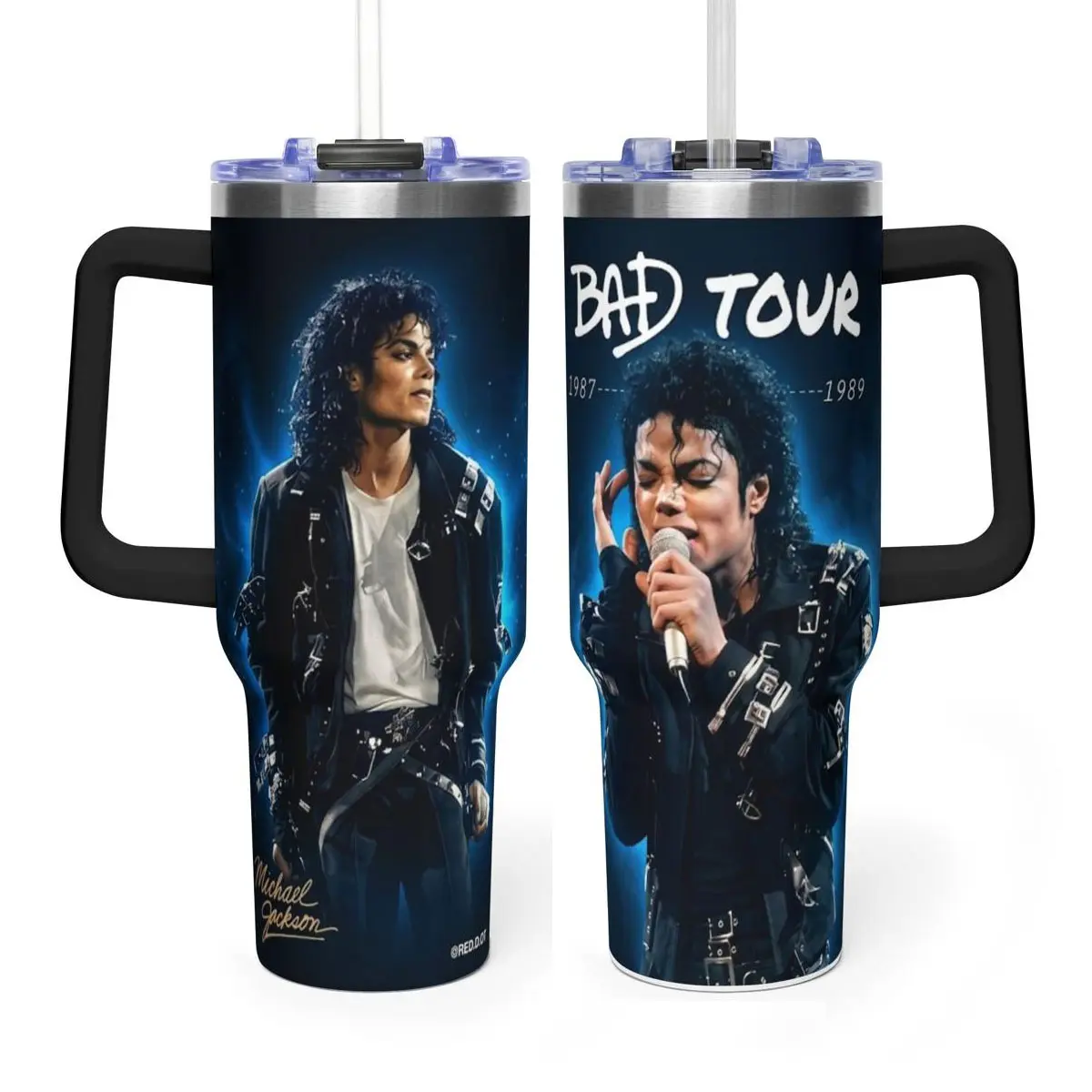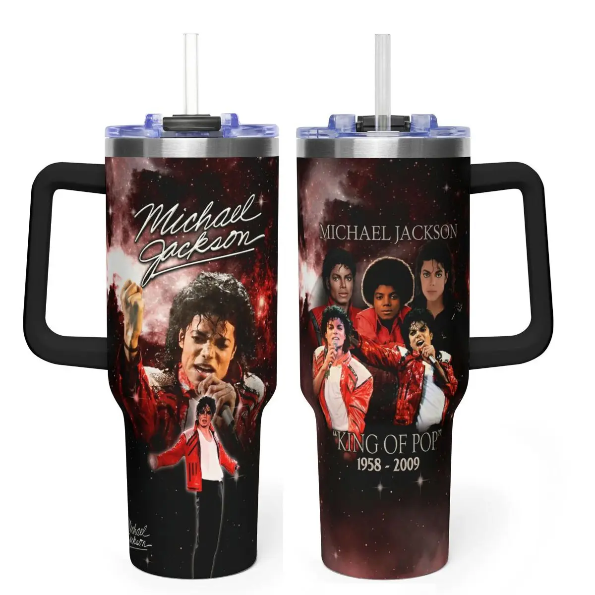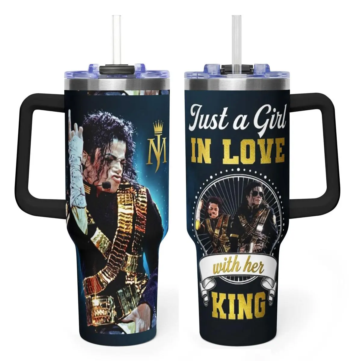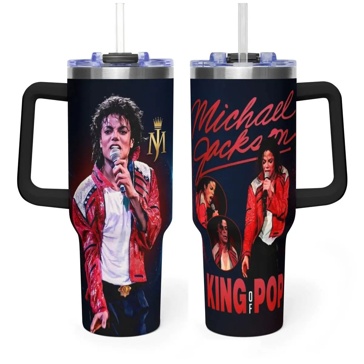 Michael Jackson 40oz Tumbler with Handle – King of Pop MJ Fan Cup Insulated Travel Mug Gift