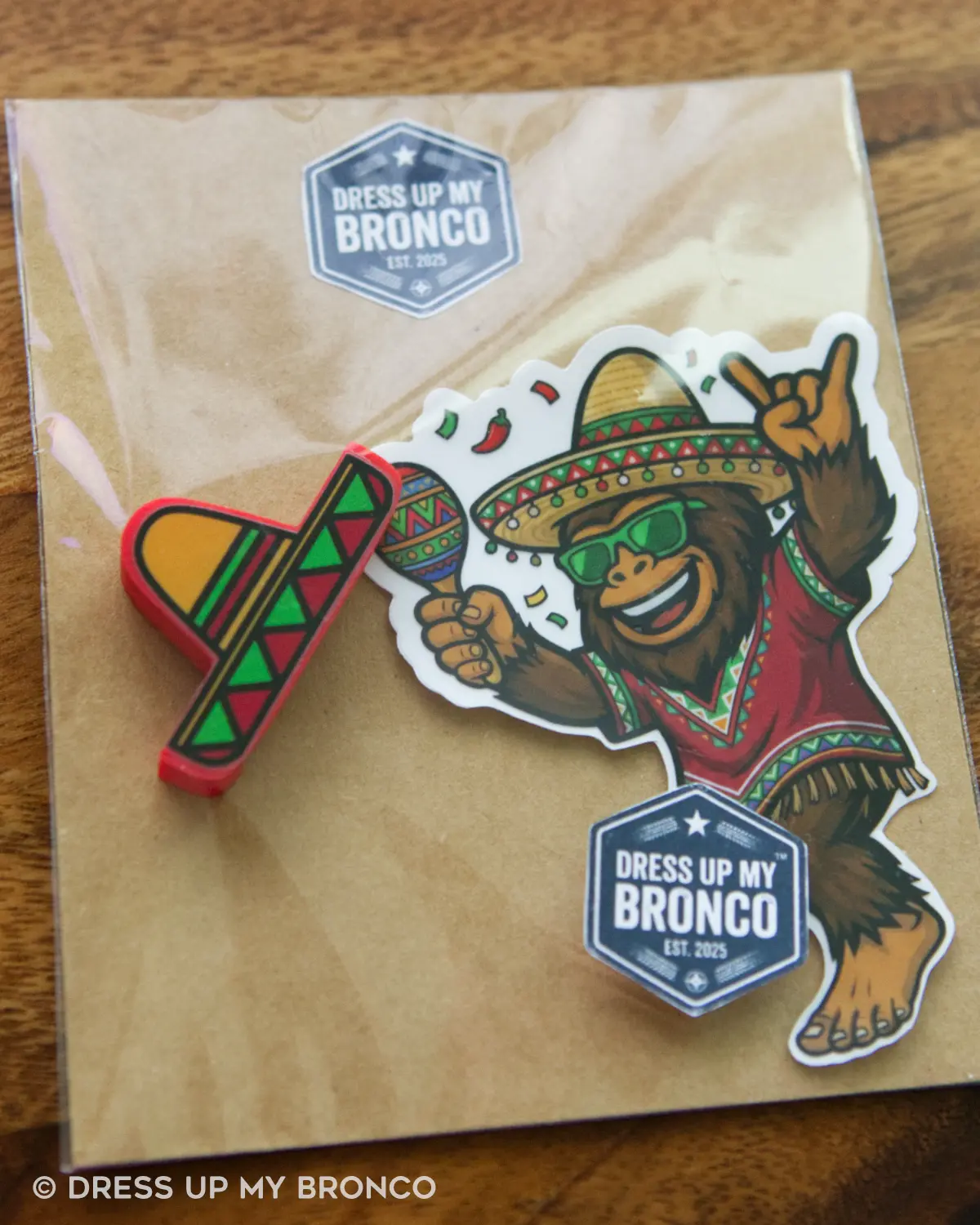 Fiesta Mode Sasquatchy Set is the ultimate party-ready “outfit” — featuring a festive Sasquatchy rocking a sombrero, shades, and maracas, paired with a bold 3D sombrero hat for your Bronco emblem. It’s fun, vibrant, and guaranteed to bring instant smiles wherever you go.