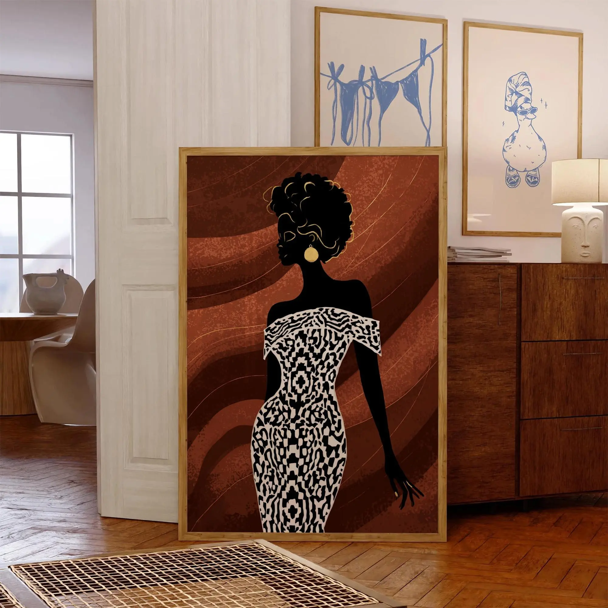 African American Black Women Artwork, Black Woman Portrait, Modern Afrocentric Prints, Graceful Abstract, Fashion Glamour Chic Illustration