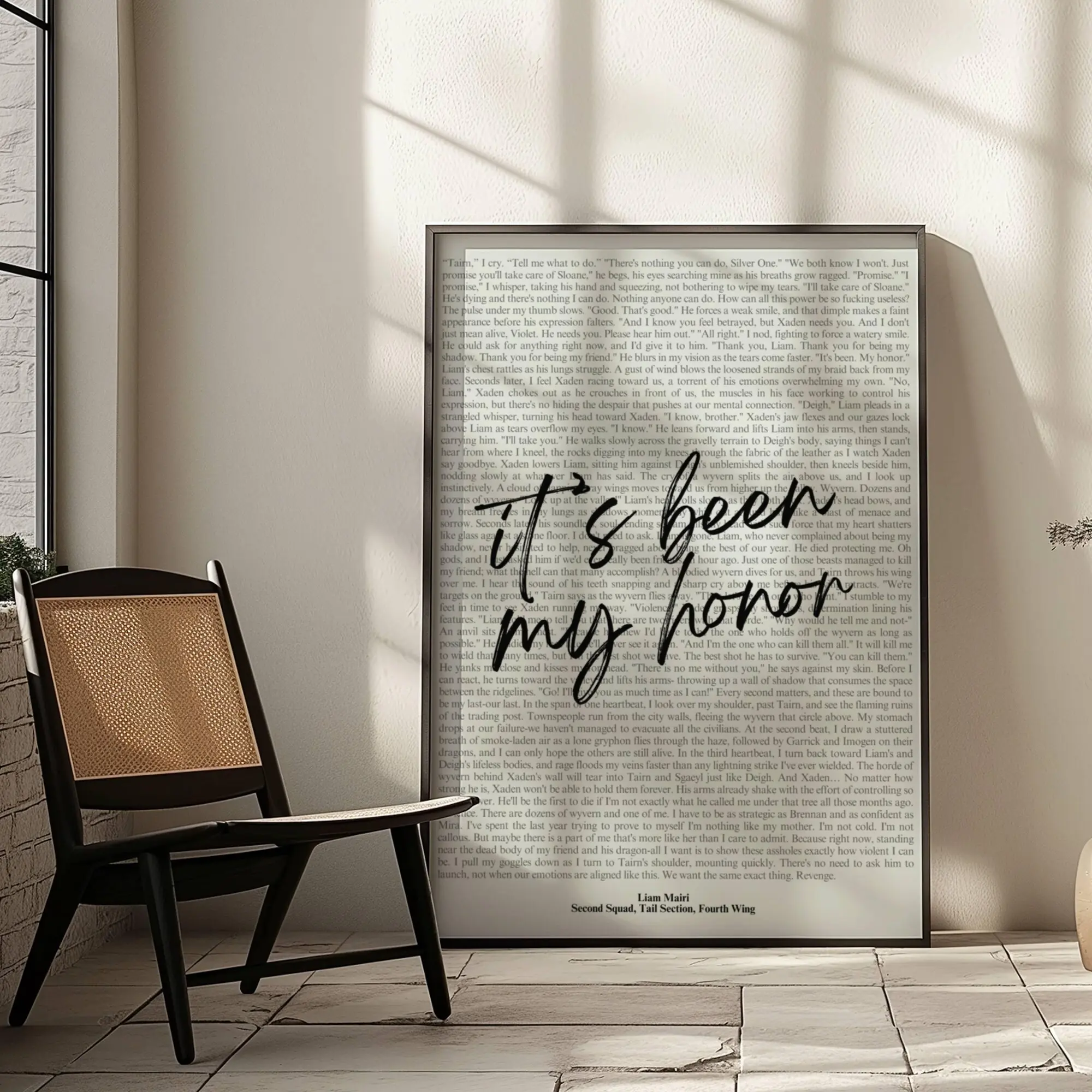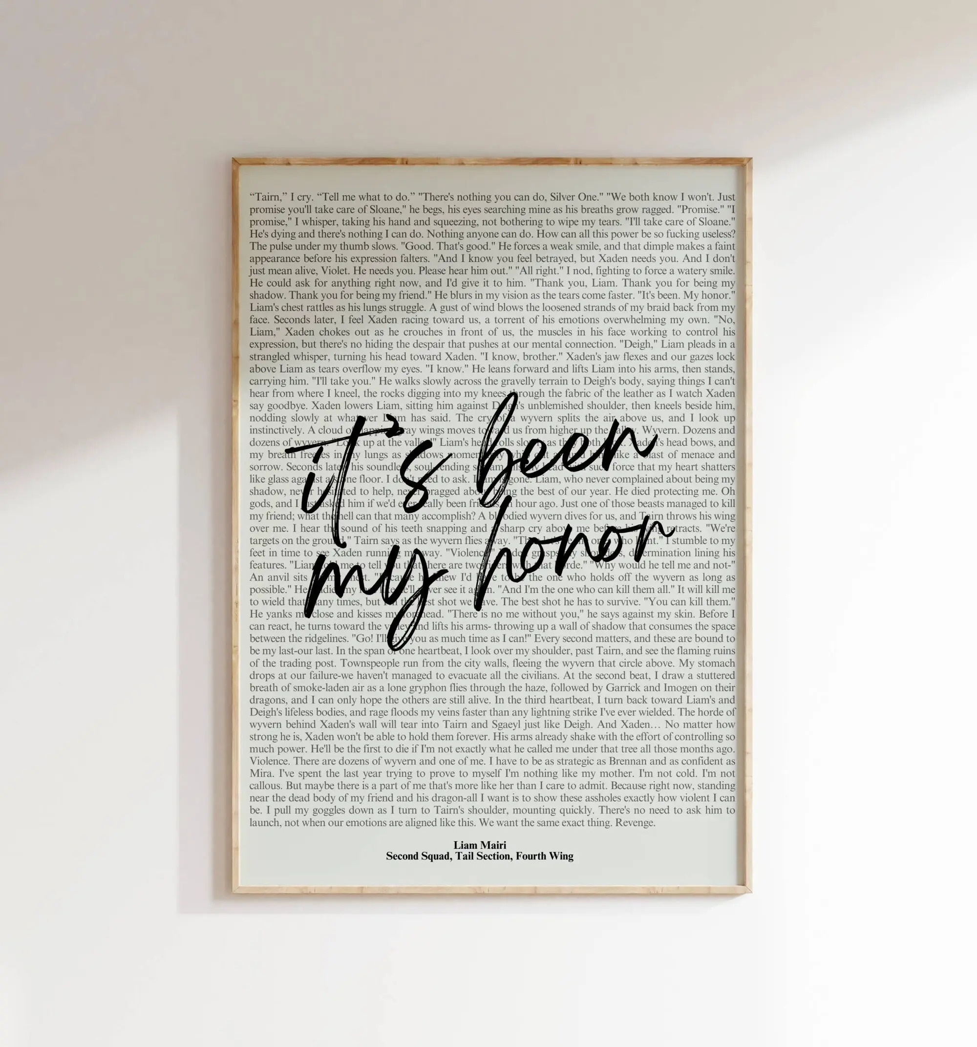 Book Quote Print, Fourth Wing Quote, Rebecca Yarros, It'S Been My Honor, Wall Art, Book Lover Poster, Printable