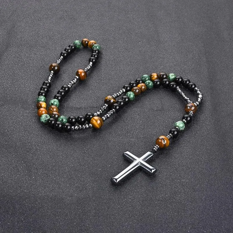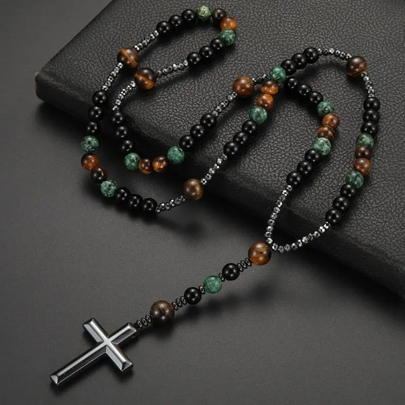 Elegant and Versatile DesignThis vintage natural stone cross pendant necklace is perfect for everyday wear or as a party accessory. Crafted from African pine tiger's eye, it offers a unique aesthetic appeal. The unisex design makes it suitable for all. Enhance your look with this timeless piece.