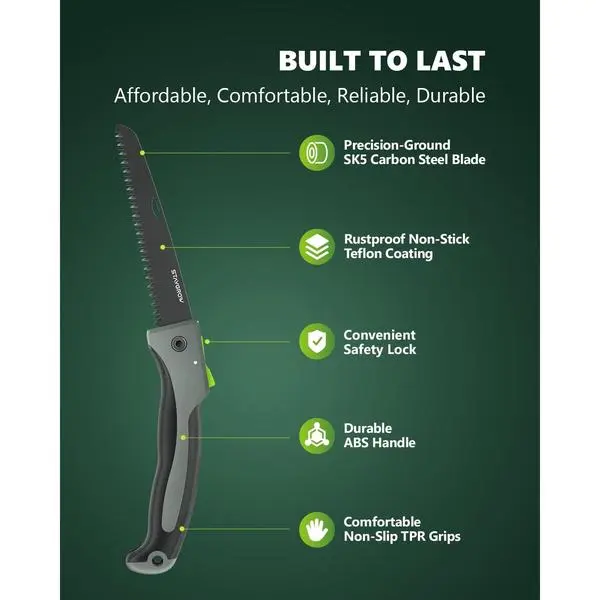 With a hardened SK5 high carbon steel blade and quenched strengthened technology, this saw is built to last. It can withstand everyday use for over a decade. The blade's quality ensures long-term performance, making it a reliable tool for all your cutting needs.