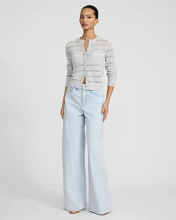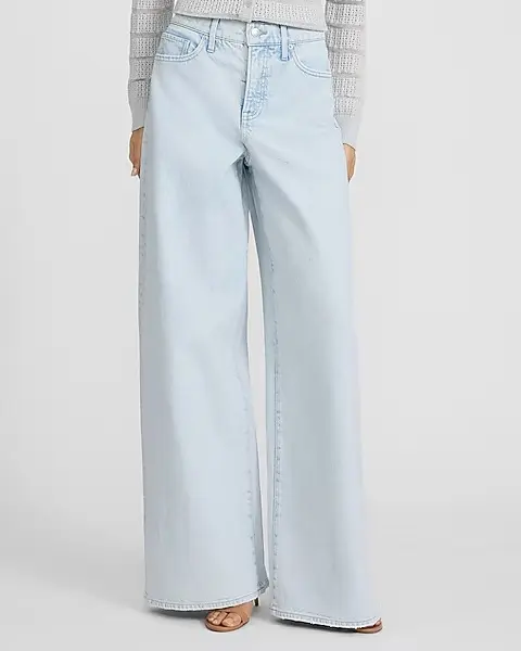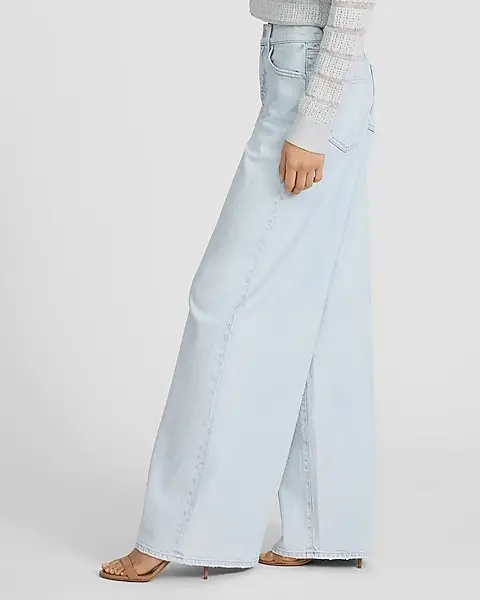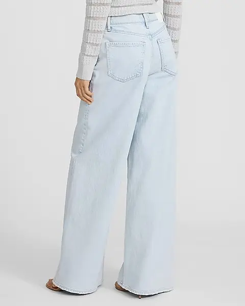 The perfect jeans for this season with a relaxed wide leg shape. Sitting at a high rise with a fitted look through the waist and hip, this light wash denim is designed to fall straight down from the hip to give a long and lean appearance.