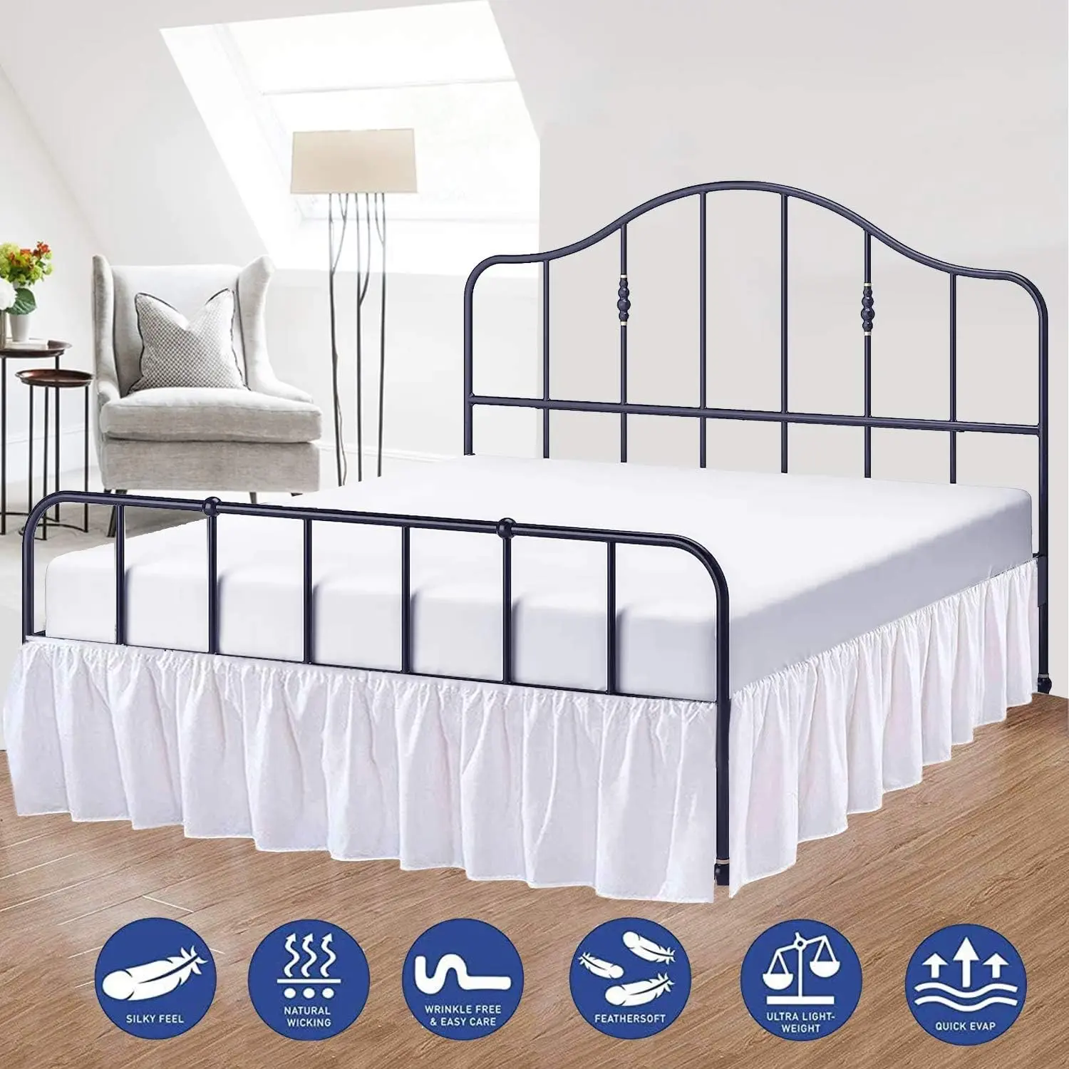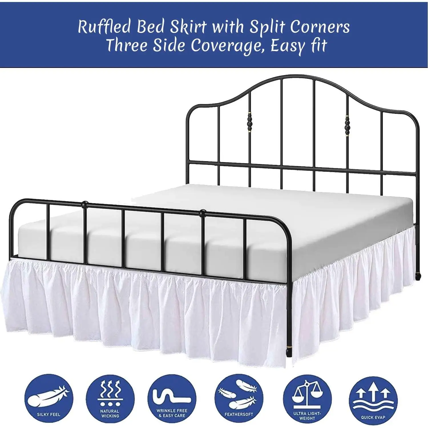 ❥ 𝐏𝐚𝐜𝐤𝐚𝐠𝐞 𝐈𝐧𝐜𝐥𝐮𝐝𝐞:- One Piece Split Corner Ruffle Bed Skirt, Queen Size- 60" x 80" with 15 Inch Drop.❥ 𝐓𝐡𝐫𝐞𝐞-𝐒𝐢𝐝𝐞 𝐂𝐨𝐯𝐞𝐫𝐚𝐠𝐞 𝐟𝐨𝐫 𝐚 𝐏𝐨𝐥𝐢𝐬𝐡𝐞𝐝 𝐋𝐨𝐨𝐤:- With three-side coverage, this bed skirt offers a tailored and neat appearance for your bed.It gracefully covers the exposed sides of the mattress, giving your bedroom a more complete and stylish look.❥ 𝐄𝐱𝐩𝐞𝐫𝐭𝐥𝐲 𝐓𝐚𝐢𝐥𝐨𝐫𝐞𝐝 𝐟𝐨𝐫 𝐚 𝐏𝐞𝐫𝐟𝐞𝐜𝐭 𝐅𝐢𝐭:- The bed skirt is expertly tailored to fit a queen-sized bed (60x80 inches) with a drop length of 10 to 21 inches.Its precise measurements ensure a snug, tailored appearance that complements your bedding and bedroom decor beautifully.❥ 𝐇𝐢𝐠𝐡-𝐐𝐮𝐚𝐥𝐢𝐭𝐲 𝐌𝐢𝐜𝐫𝐨𝐟𝐢𝐛𝐞𝐫 𝐌𝐚𝐭𝐞𝐫𝐢𝐚𝐥:- Crafted from 100% microfiber, this bedskirt is not only luxurious but also durable.Microfiber is known for its exceptional softness and resistance to wrinkles, making it a practical choice for a bedskirt.It's easy to care for and maintains its crisp appearance over time.❥ 𝐒𝐩𝐥𝐢𝐭 𝐂𝐨𝐫𝐧𝐞𝐫 𝐃𝐞𝐬𝐢𝐠𝐧 𝐟𝐨𝐫 𝐄𝐚𝐬𝐲 𝐈𝐧𝐬𝐭𝐚𝐥𝐥𝐚𝐭𝐢𝐨𝐧:- This queen-sized bed skirt comes with split corners, making it a breeze to install on your bed. The innovative design ensures that it fits seamlessly around the corners of your mattress, preventing any awkward bunching or misalignment.
