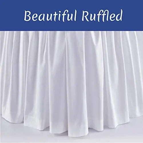 Ruffled Bed Skirt with Split Corners - Perfect Fit for Any Bed Introducing our Ruffled Bed Skirt with Split Corners, a versatile bedding accessory designed to elevate the look of your bedroom while providing practical benefits. Crafted from premium 100% microfiber, this bedskirt is not only luxurious but also durable, resisting stains, wrinkles, and fading over time. Its elegant ruffle design adds a touch of sophistication to your bedding ensemble, creating a welcoming atmosphere in your bedroom. Versatile Size and Color Options:- We understand that every bedroom is unique, which is why our Ruffled Bed Skirt is available in a range of sizes, including Queen, King, Full, and Twin, ensuring a perfect fit for your bed. Additionally, you can choose from a variety of classic colors such as Ivory, White, Light Grey, and Dark Grey to match your bedroom decor effortlessly. Adjustable Drop Lengths:- Tailor the bedskirt to your desired look and bed height with our versatile drop length options. Whether you prefer a subtle 10-inch drop or a more dramatic 24-inch drop, you can select the perfect length to suit your style and bedroom setup. This customization ensures that your bedskirt complements your bedding ensemble and overall bedroom decor seamlessly. Upgrade your bedding ensemble effortlessly with our Ruffled Bed Skirt with Split Corners, a must-have accessory for those seeking both sophistication and functionality in their bedroom decor.