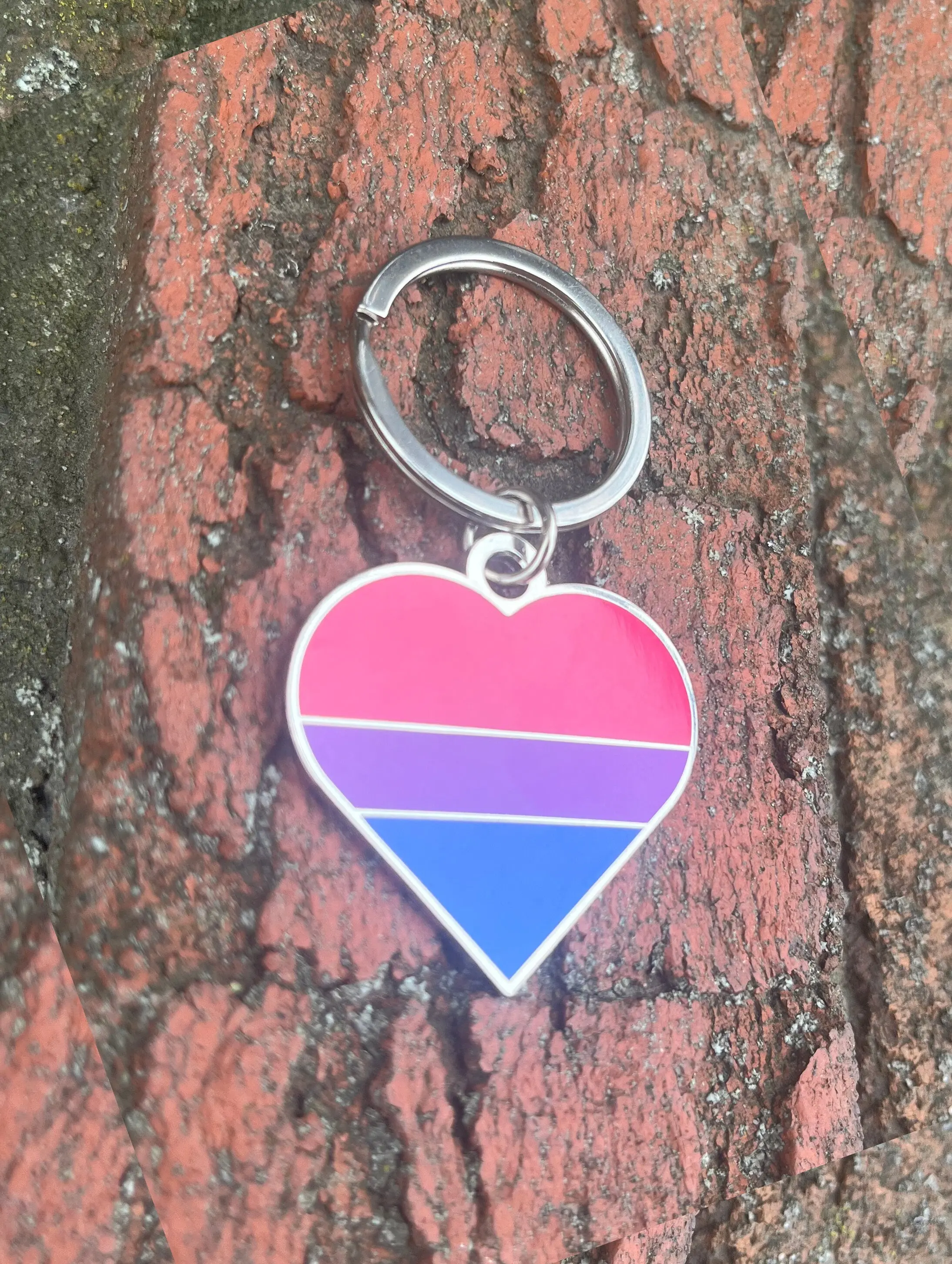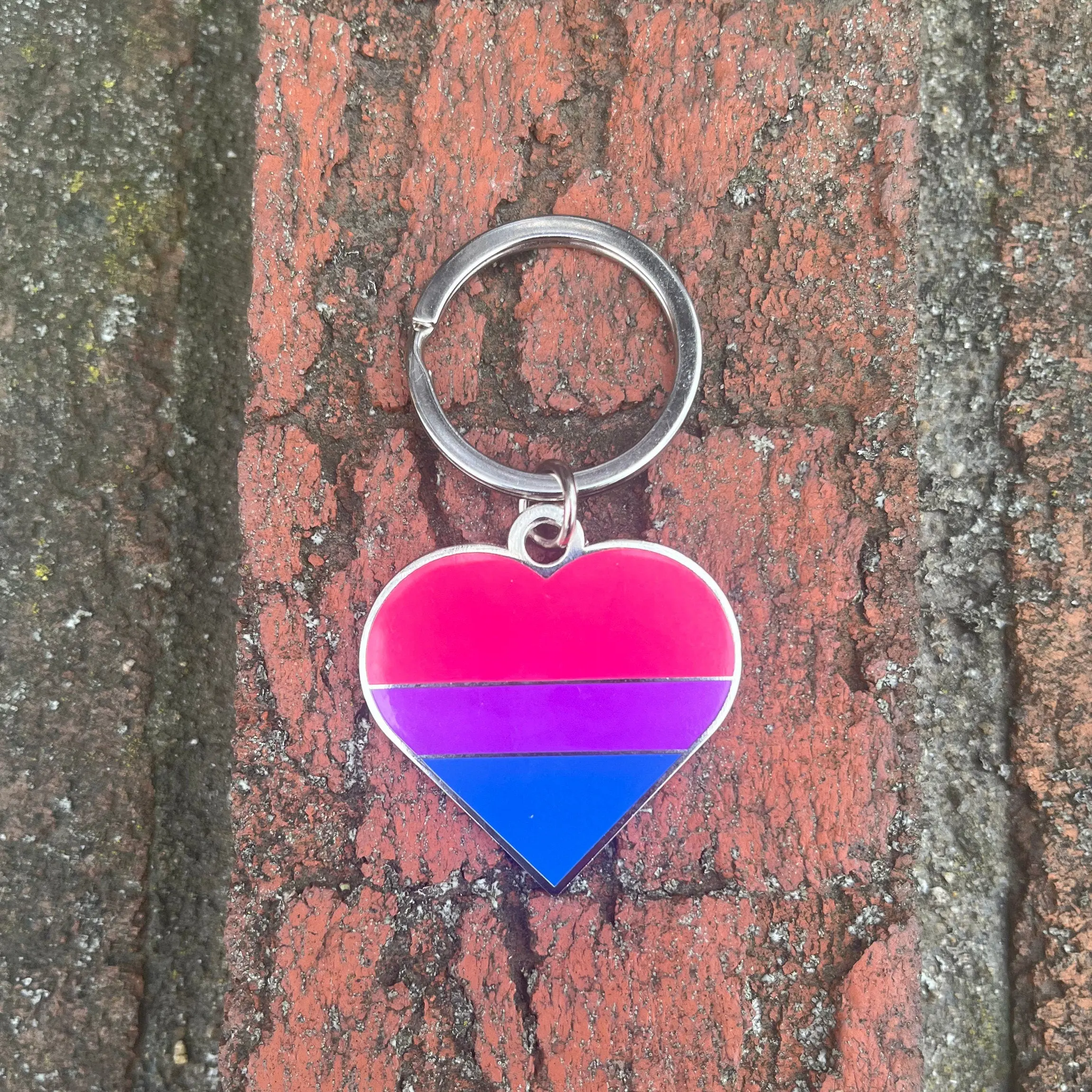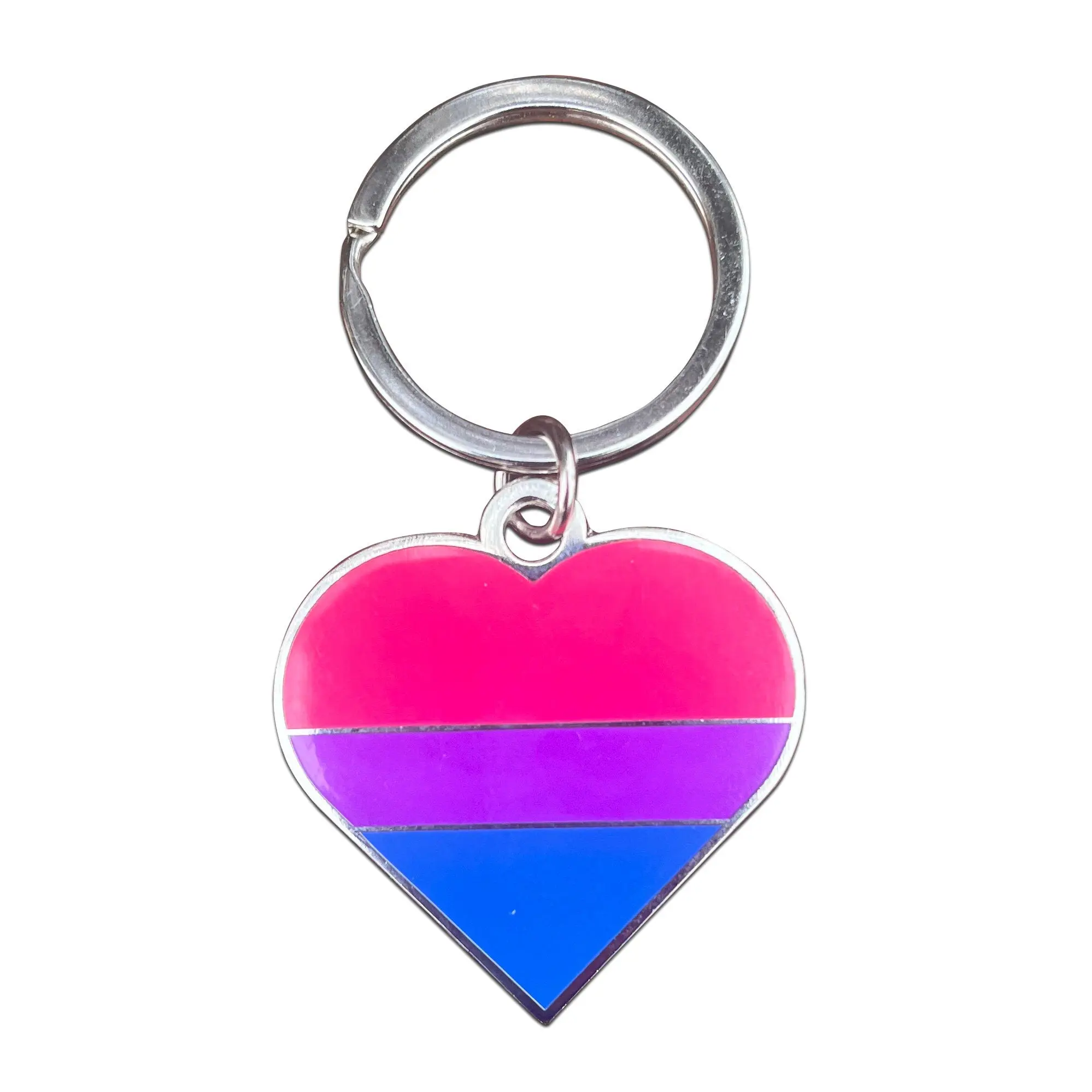 Bisexual Flag Heart Pink Purple and Blue LGBTQ Support Pride Symbol - 1.5 inch Enamel Keychain with Keyring