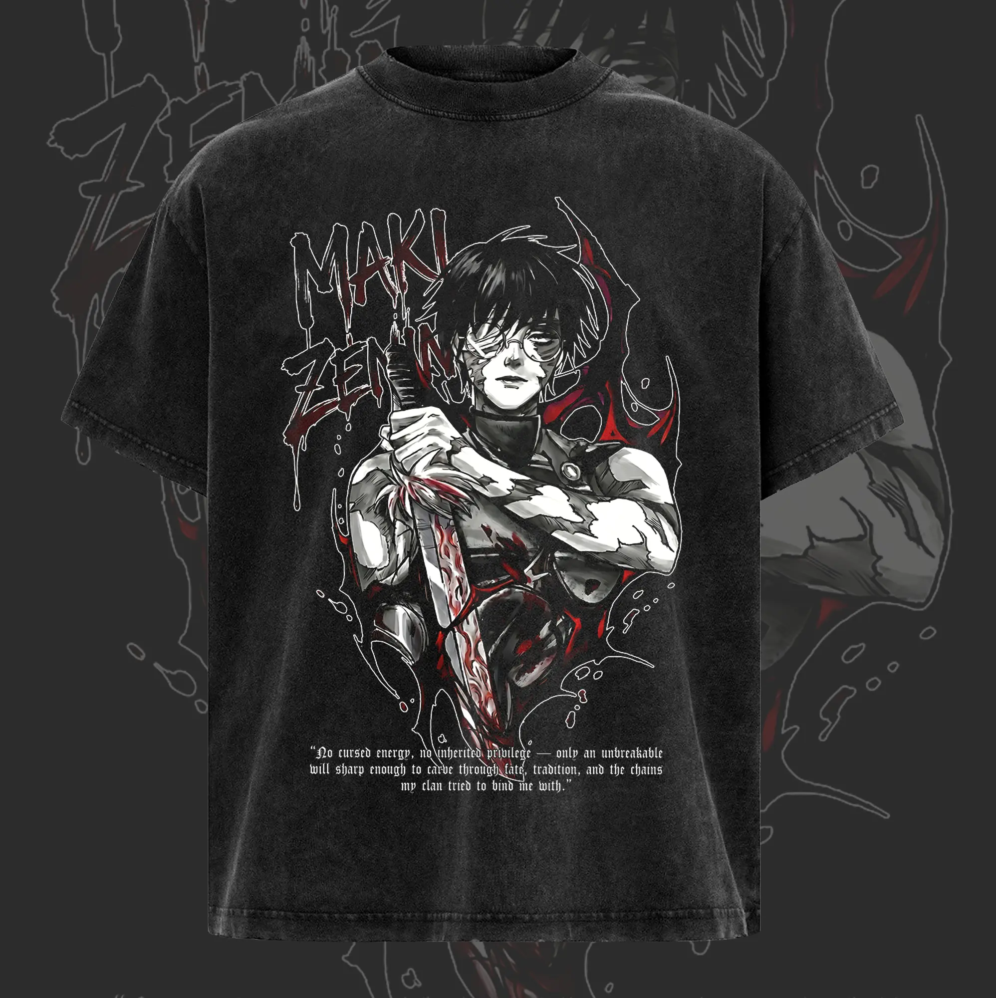 Vintage Maki Zenin Jujutsu Kaisen Washed Oversized T-Shirt & Hoodie – Anime Tee, Dark Aesthetic Maki Manga Graphic Shirt, Heavy Cotton Unisex Streetwear JJK Merch, Summer Outfits Anime Gift, Gift For Him Her