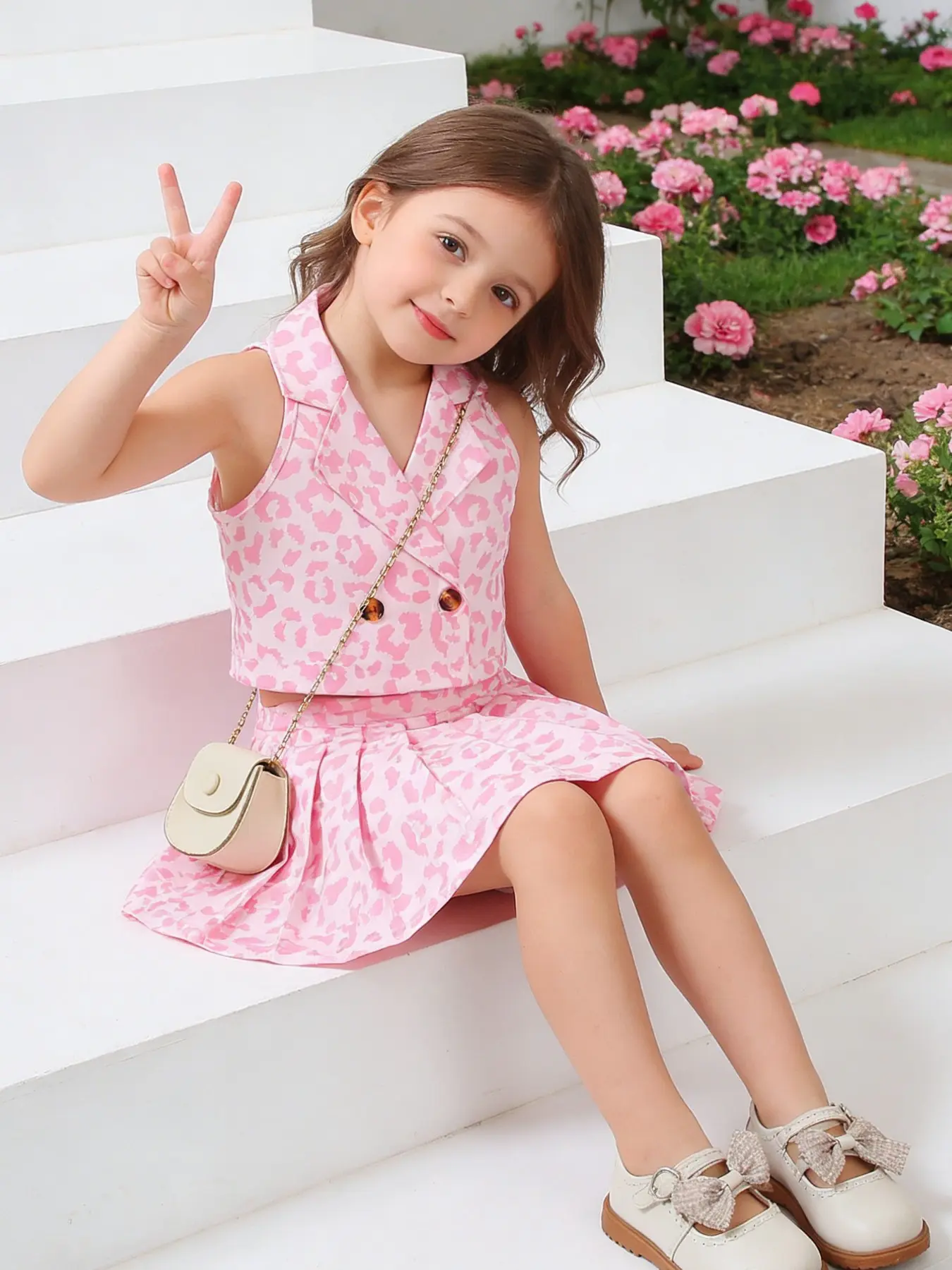 5. Barbiecore Outfit! Toddler Pink Leopard Blazer & Skirt Set