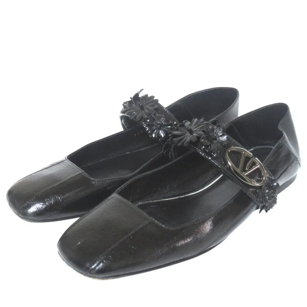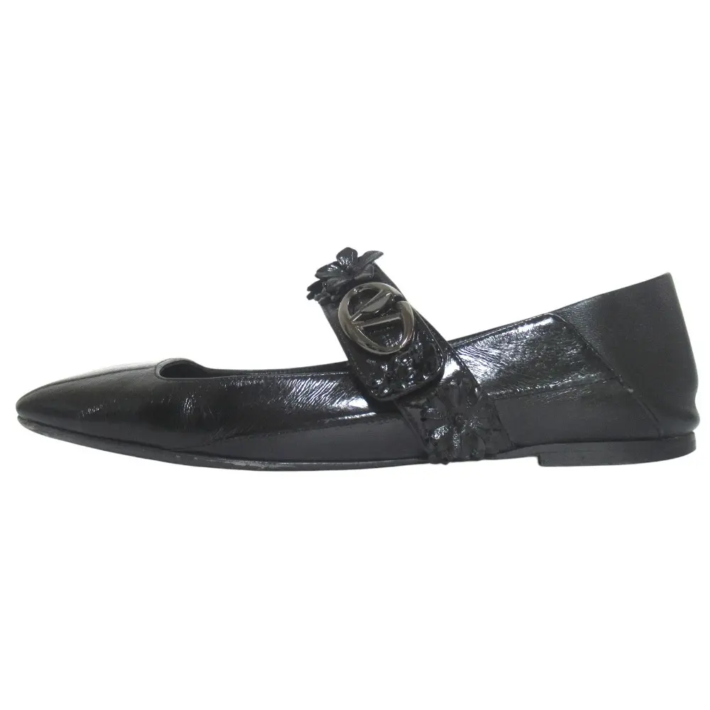 Pre-owned Valentino Other Small Leather Goods Garavani V Logo Rockstud Leather Ballet Flats
