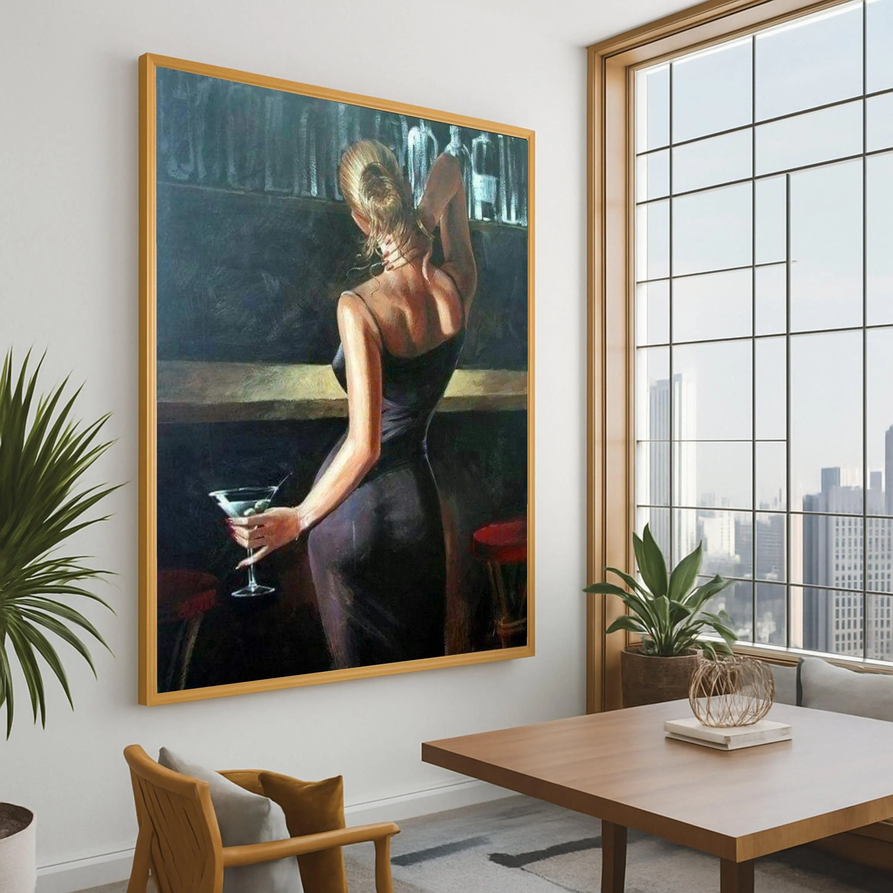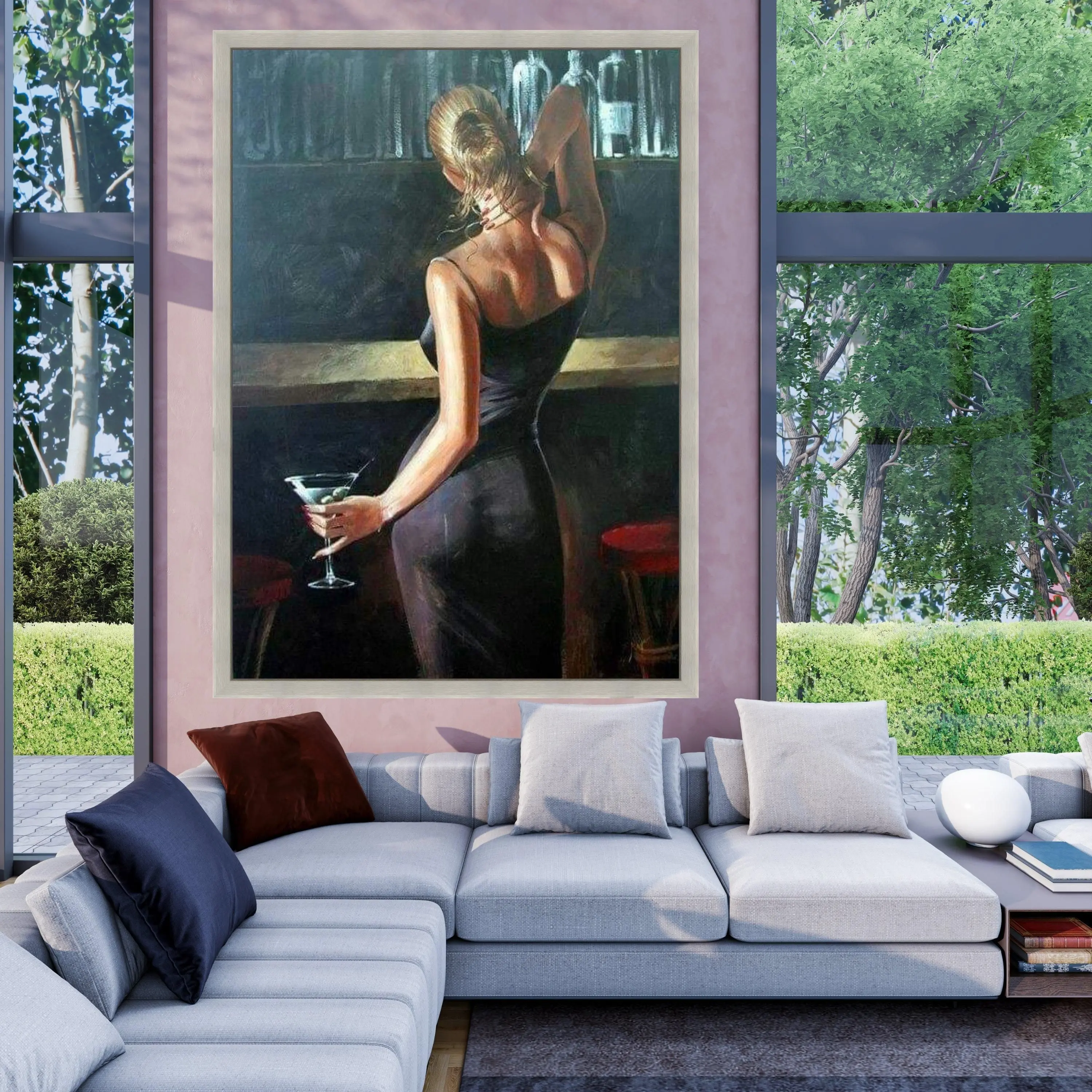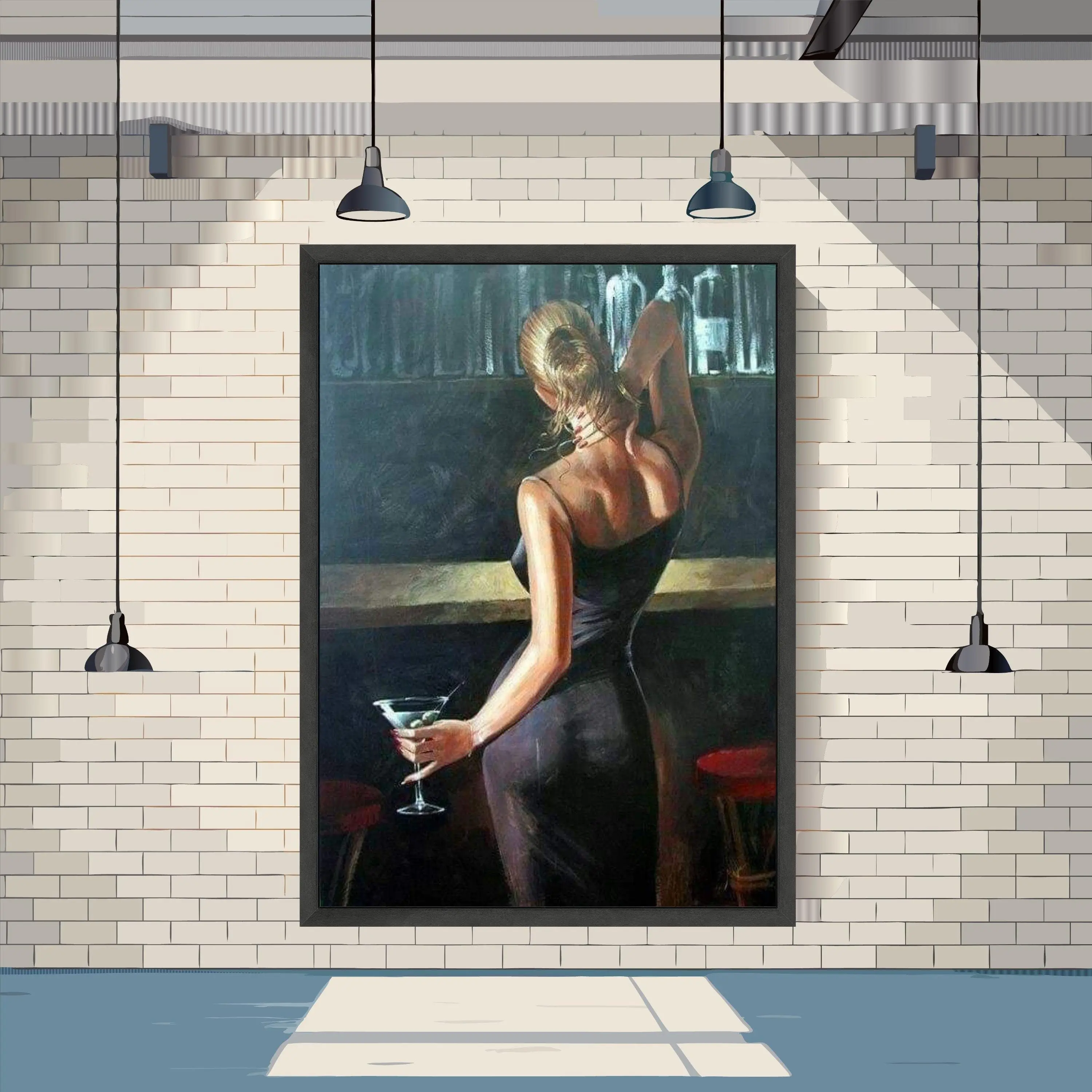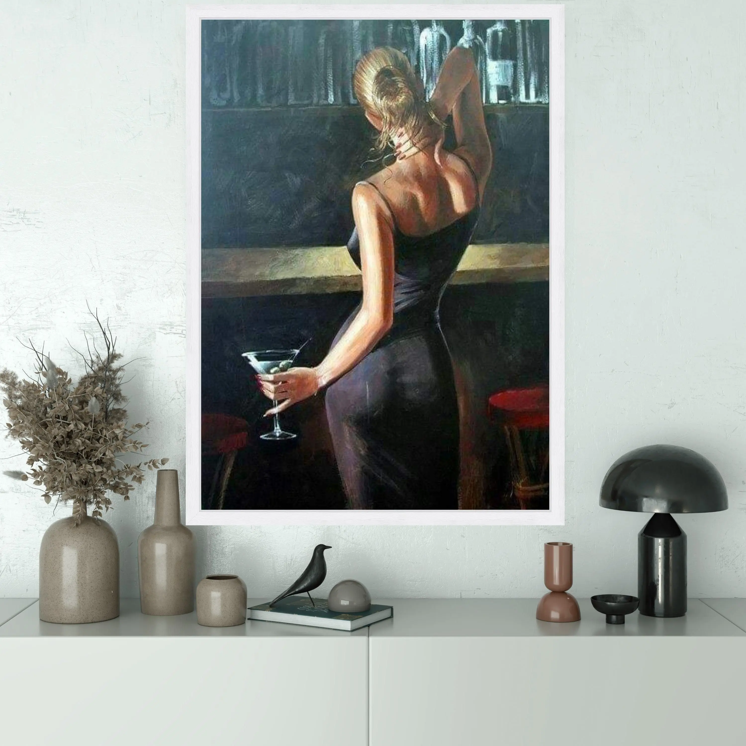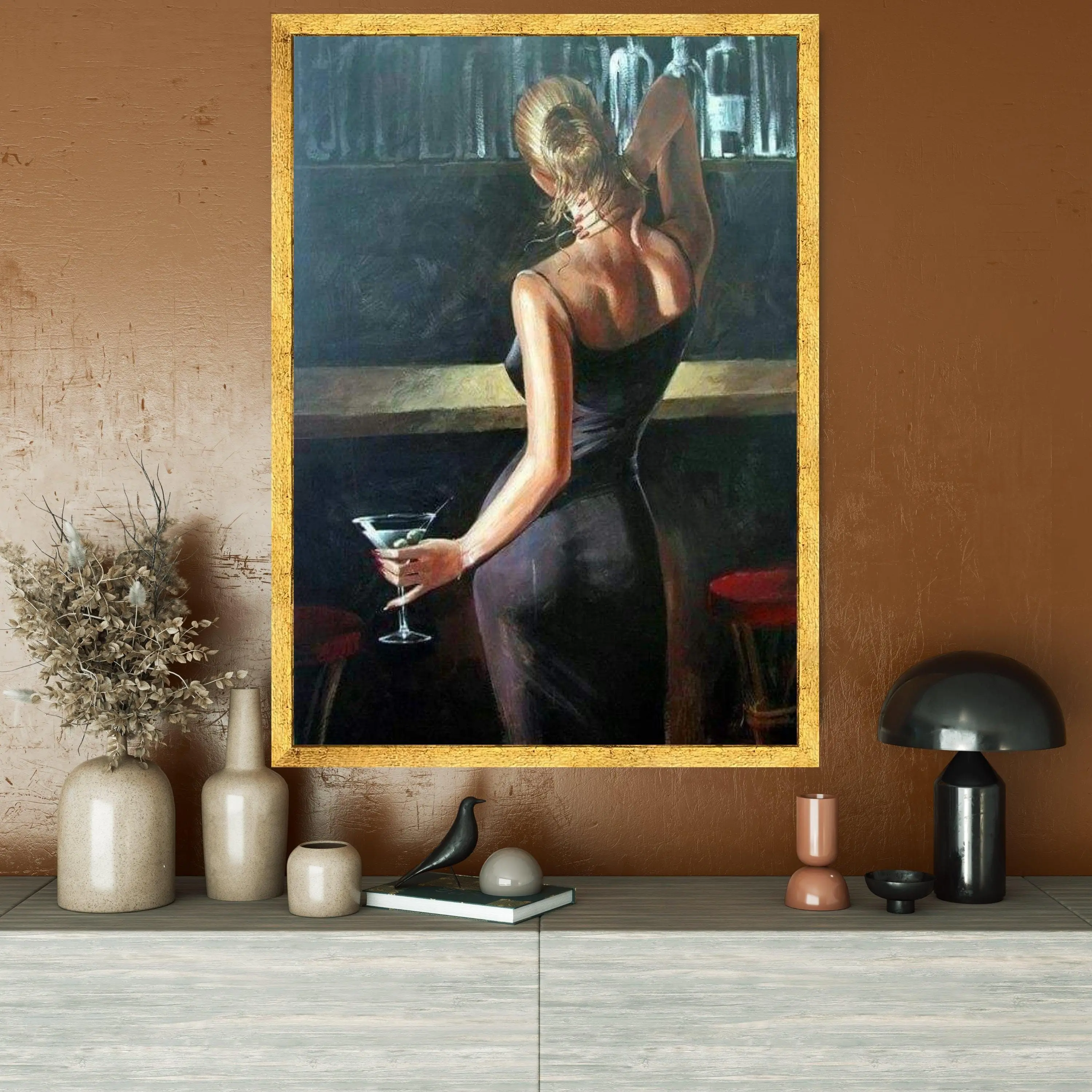 [sale off up to 40%] [Frame Canvas] Elegant Woman with Martini Canvas Print – Sophisticated Bar Scene Wall Decor – Modern Figurative Wall Art Ready to Hang
