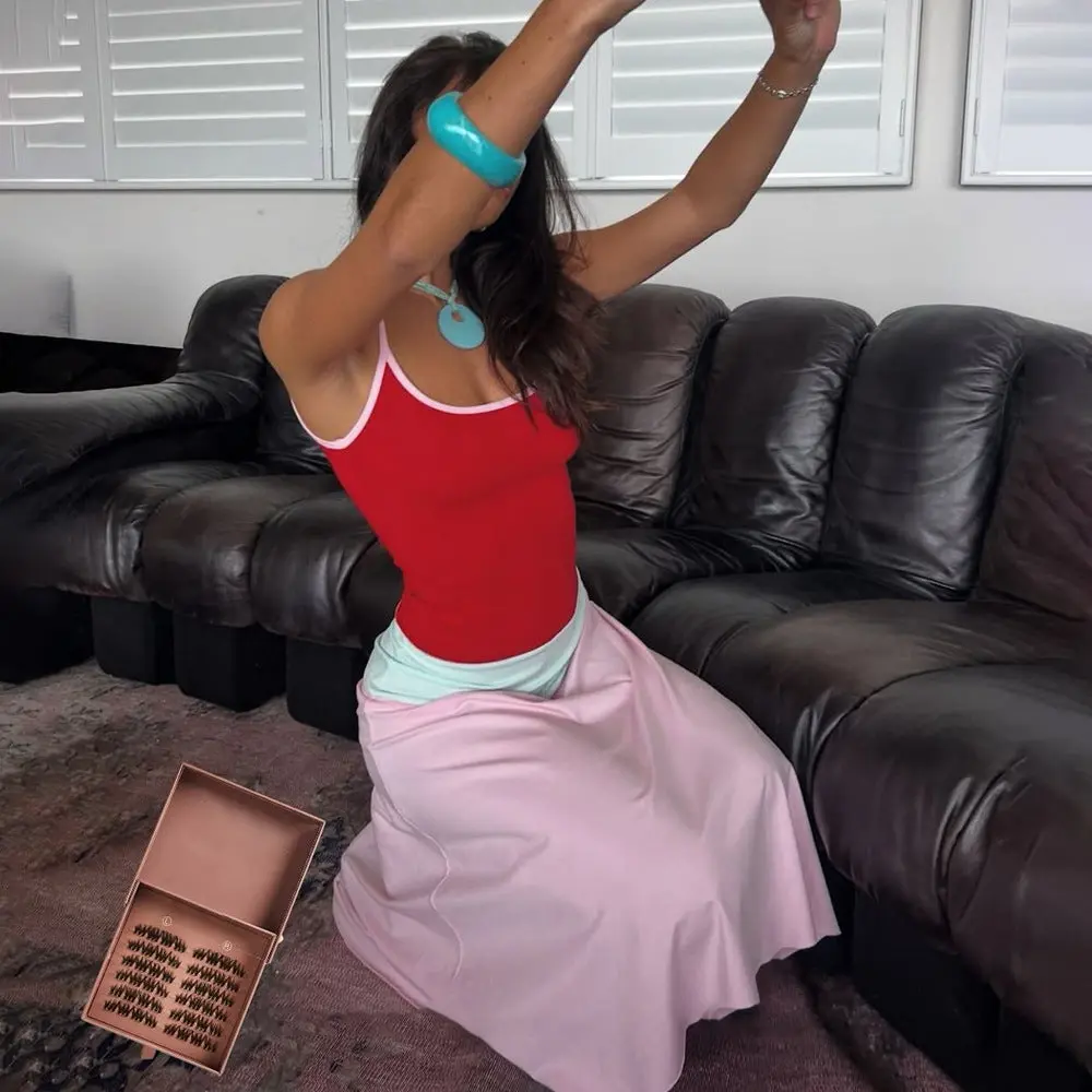 Trendy elements: Fashionable, color-blocking, off-shoulder, open-back, patchwork