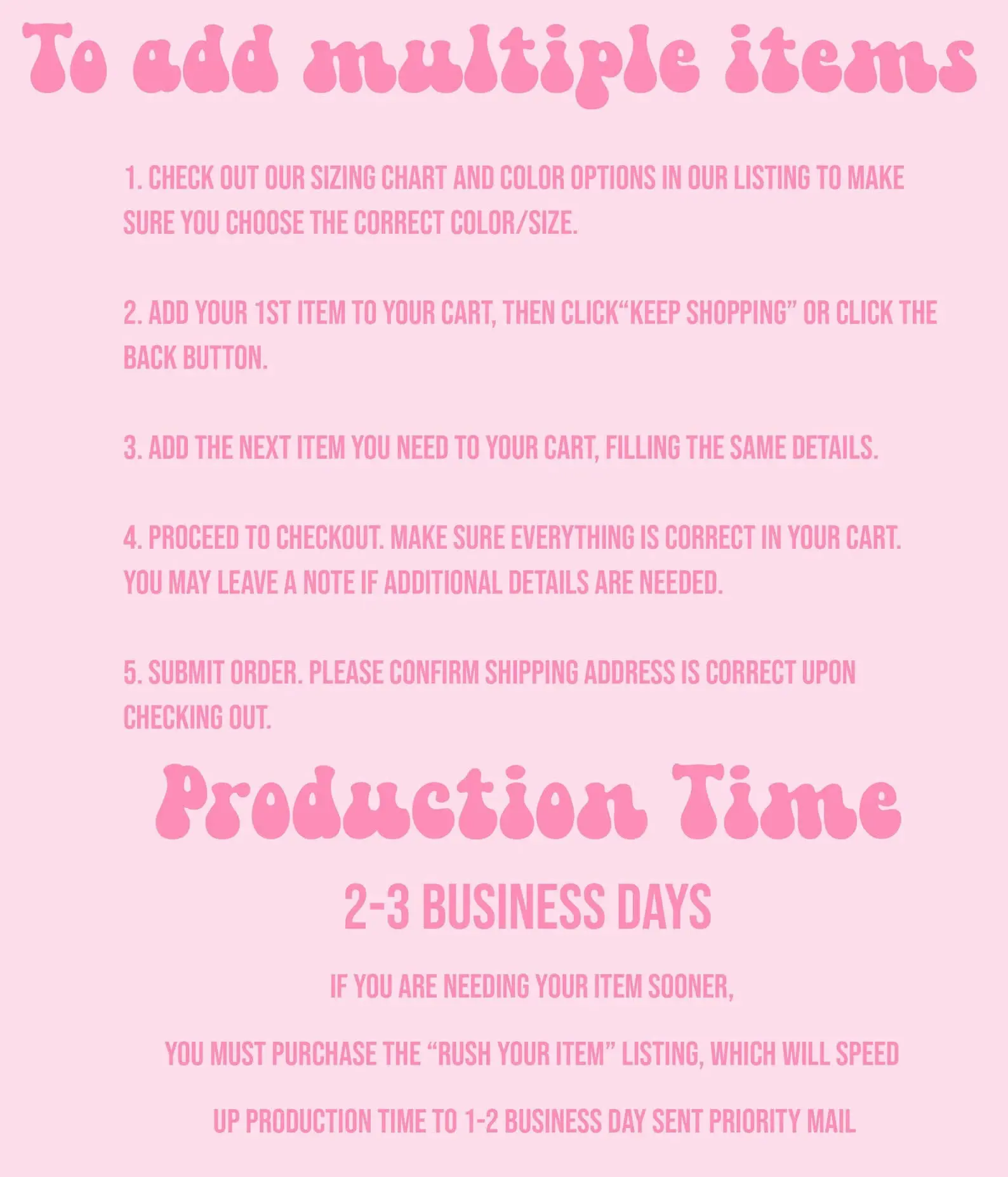 - Production Time is 5 Business Days. (May be delayed during the Holiday Season)