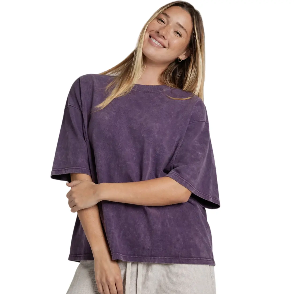 This t-shirt offers a comfortable, soft fabric that ensures a flattering fit. Perfect for casual streetwear, it features a vintage washed purple color. The acid wash crew neck and short sleeves add a minimalist style. Ideal for those seeking a solid color, this tee is a versatile addition to any wardrobe.