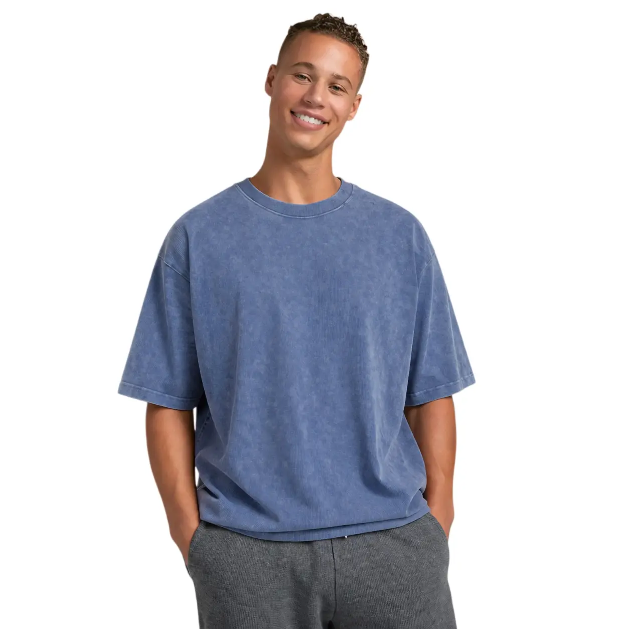 ·Acid Wash Crew Neck: Enhances the minimalist aesthetic.