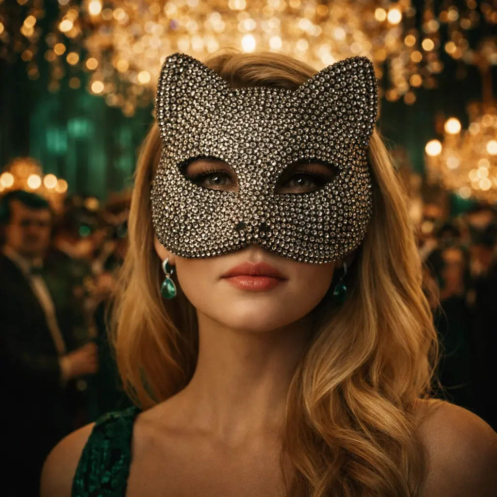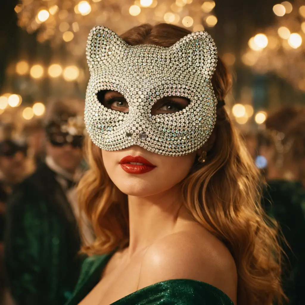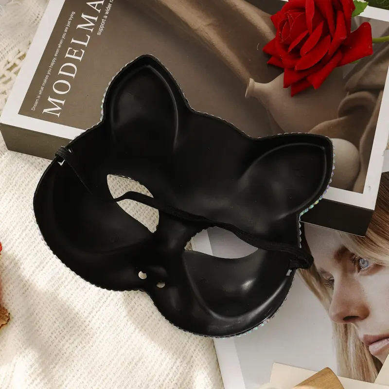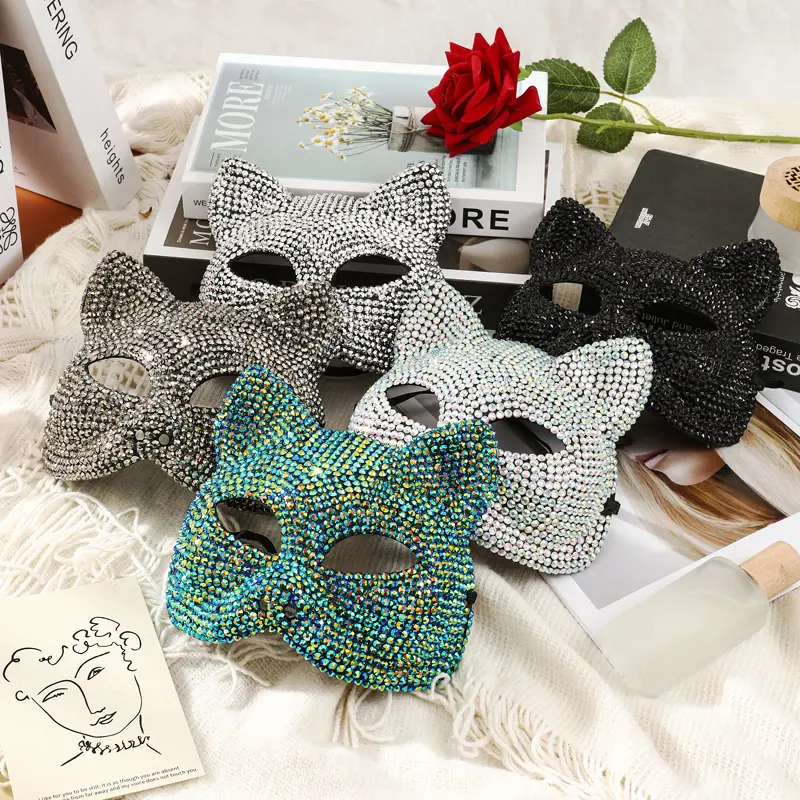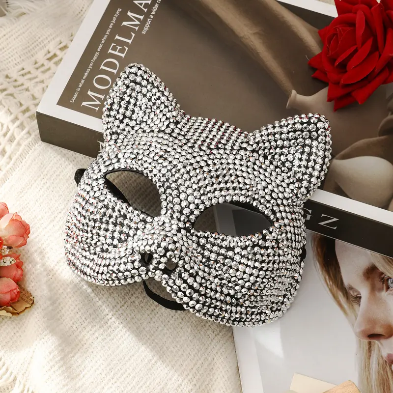 DIY Cat-Face Party Mask for Women: Handcrafted, Rhinestone-Embellished, High-Quality Two-Tone Mask for Carnivals, Festivals, Bars, and Masquerade Balls