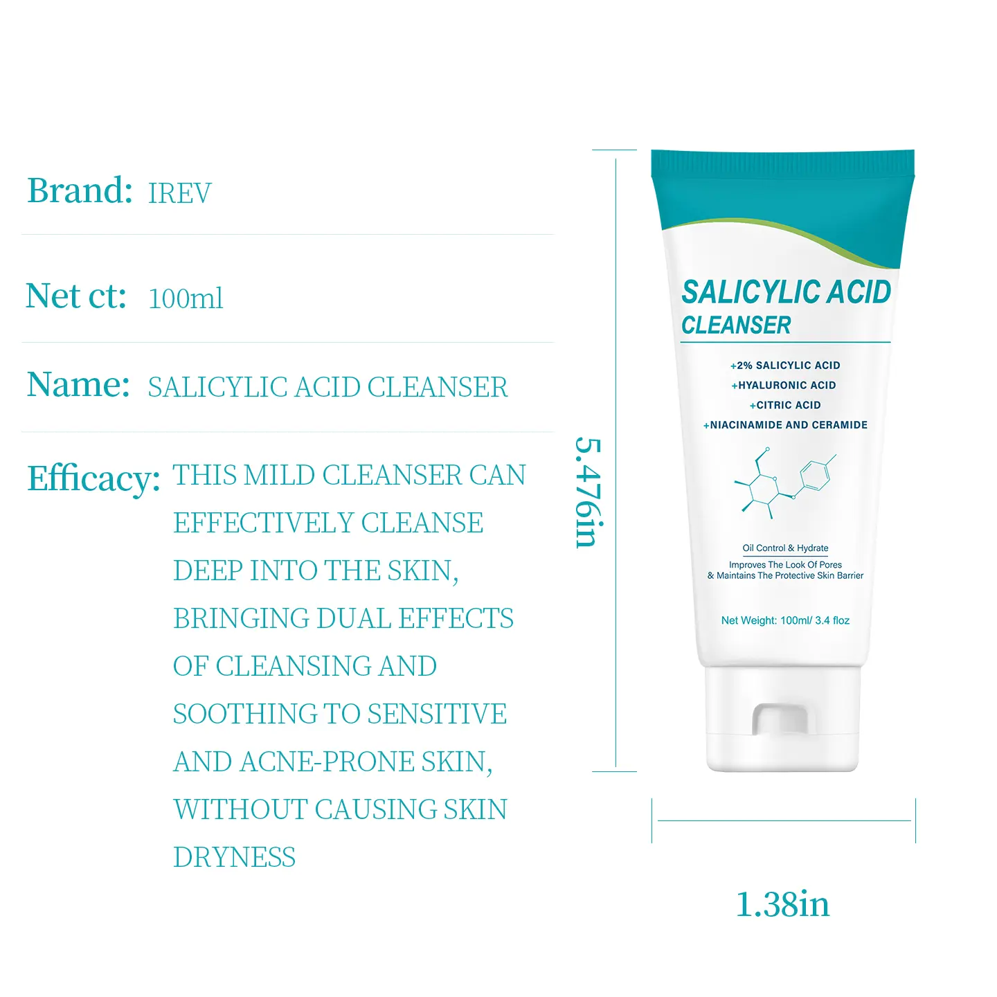 IREV 2% Salicylic Acid Cleanser | Gentle Pore Care & Hydration for Oily/Acne-Prone Skin