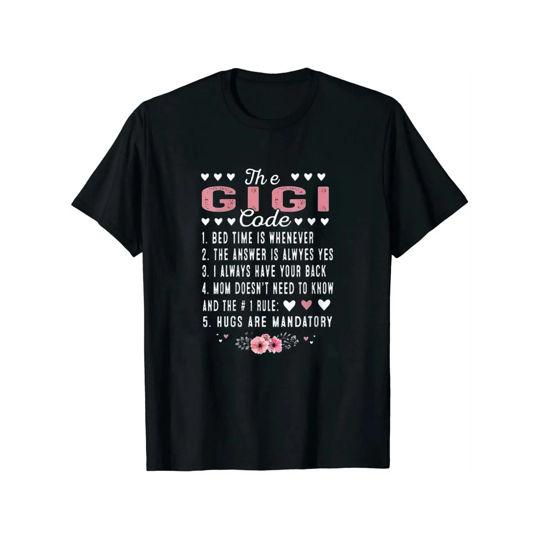 5. Women's Funny Grandma T-Shirt - The Gigi Code Retro Y2K Graphic Tee with Heart & Gigi Saying - 100% All-Season Casual Shirt for Mother's Day Gifts, Grandma Birthday, Family Gatherings - Black with White Round Neck Tshirt t0406