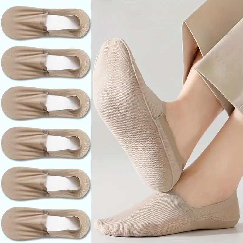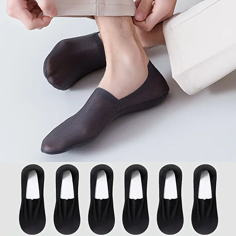 Men’s Solid Color No-Show Boat Socks, Seamless Breathable Mesh Athletic Socks 6 Pairs for Outdoor Sports