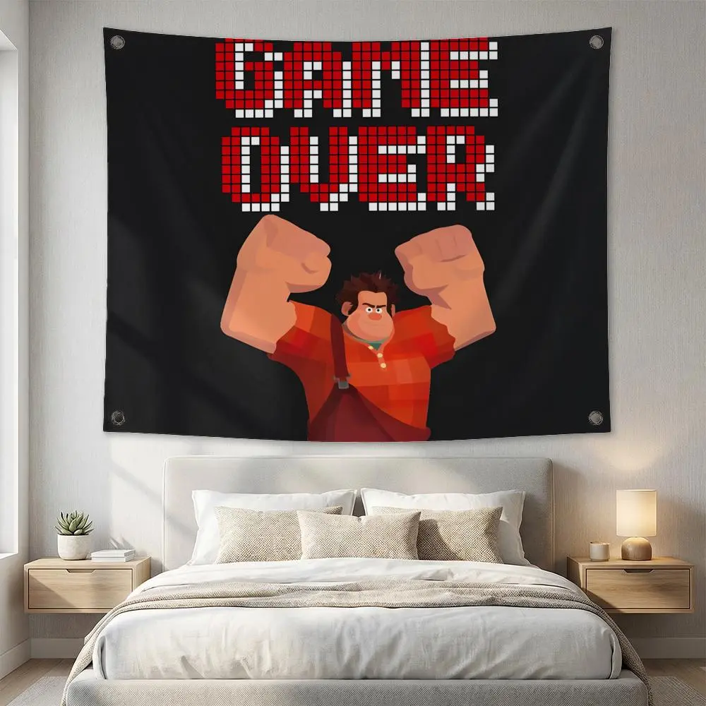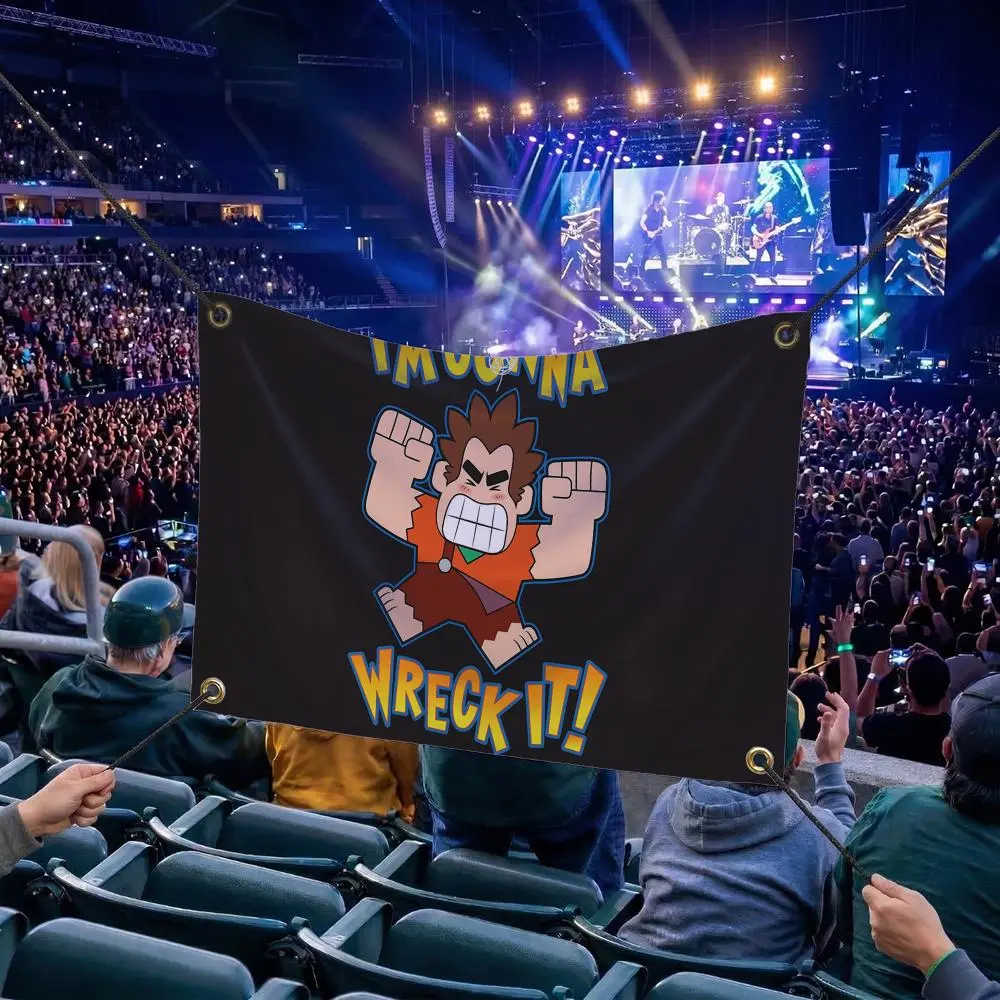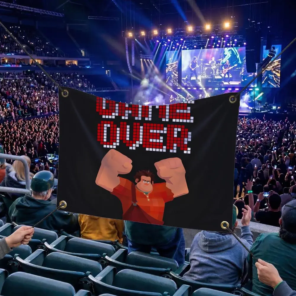 W-Wreck-It Ralph CARTOON Flags Multi Size Atmosphere Flag, Cheerleading Hand Pulled Banner, Portable Outdoor Event Flag & Wall Decor for Sports, Parties, Home and Room Decoration