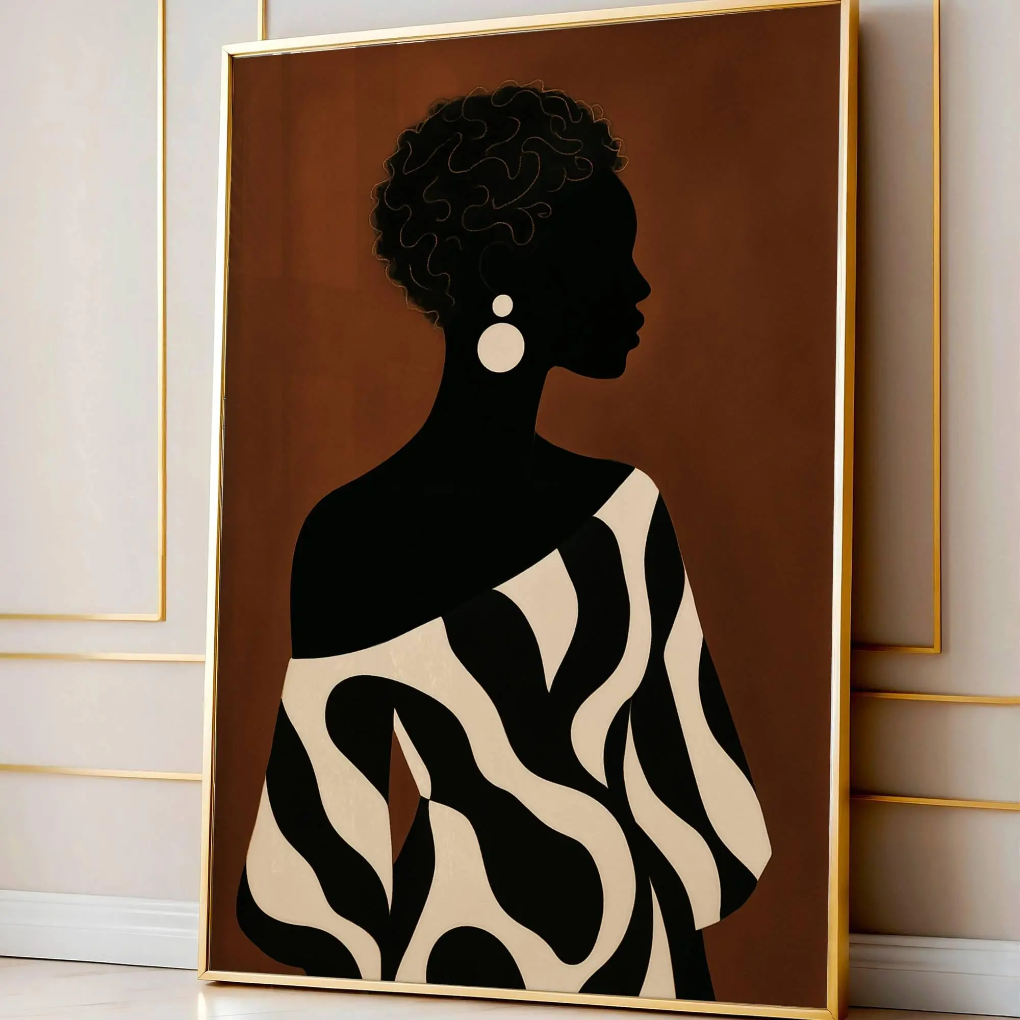 African American Black Woman Wall Art Print, Afrocentric Home Decor, Graceful Abstract Artwork, Modern Fashionable Glamour Chic Illustration