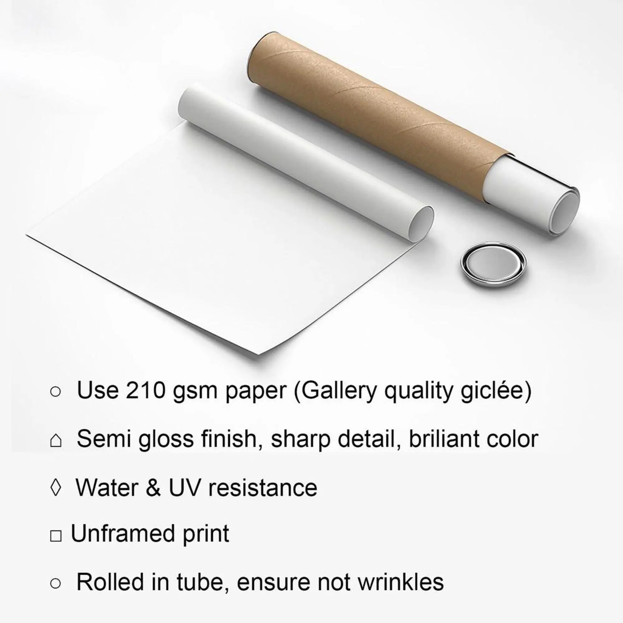 - Carefully rolled and shipped in a protective tube to prevent creases and damage.