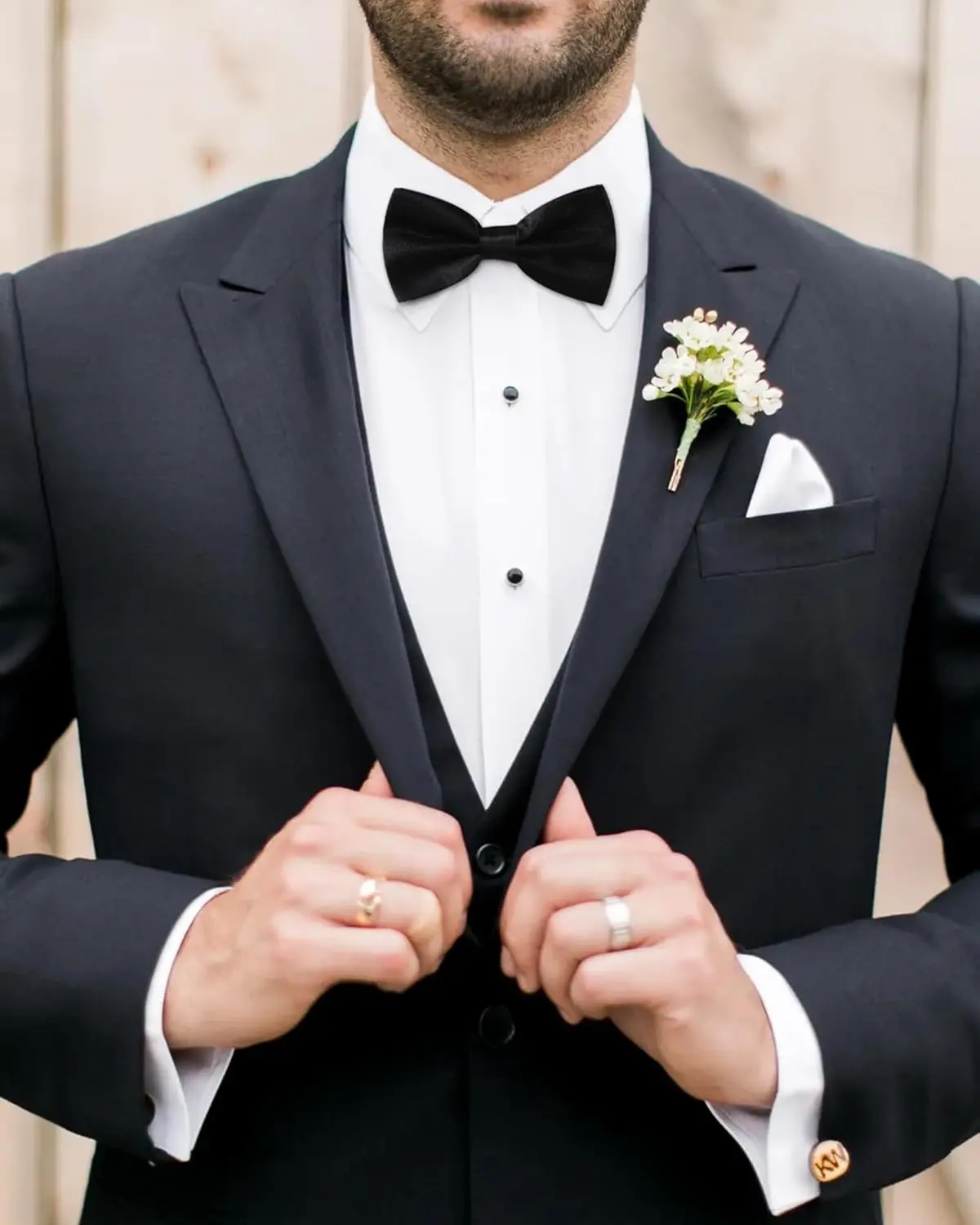 ·Bowtie Size: 4.7 inches wide, by 2.4 inches tall, bowties had the unisex color and pre-tied shape.