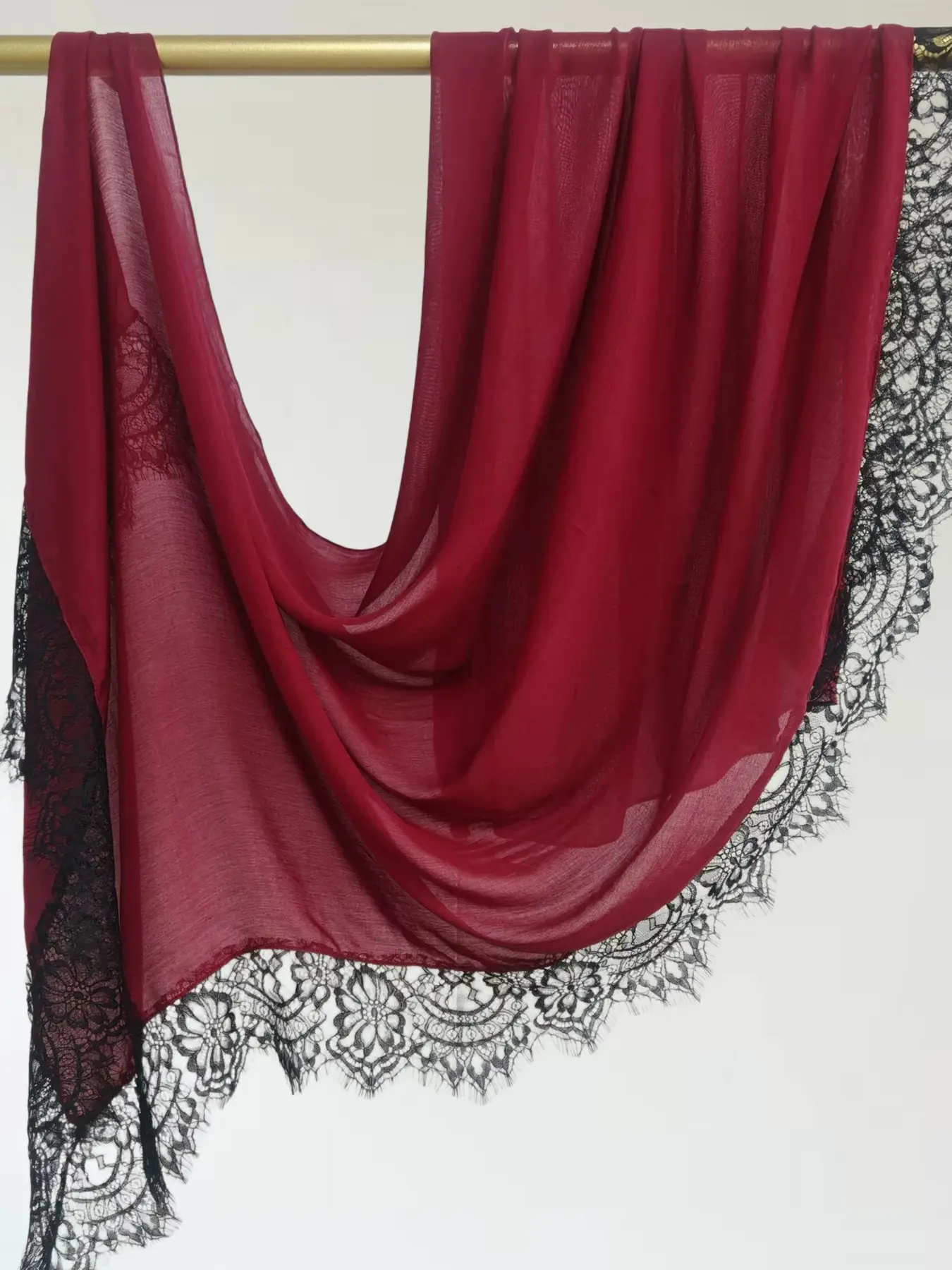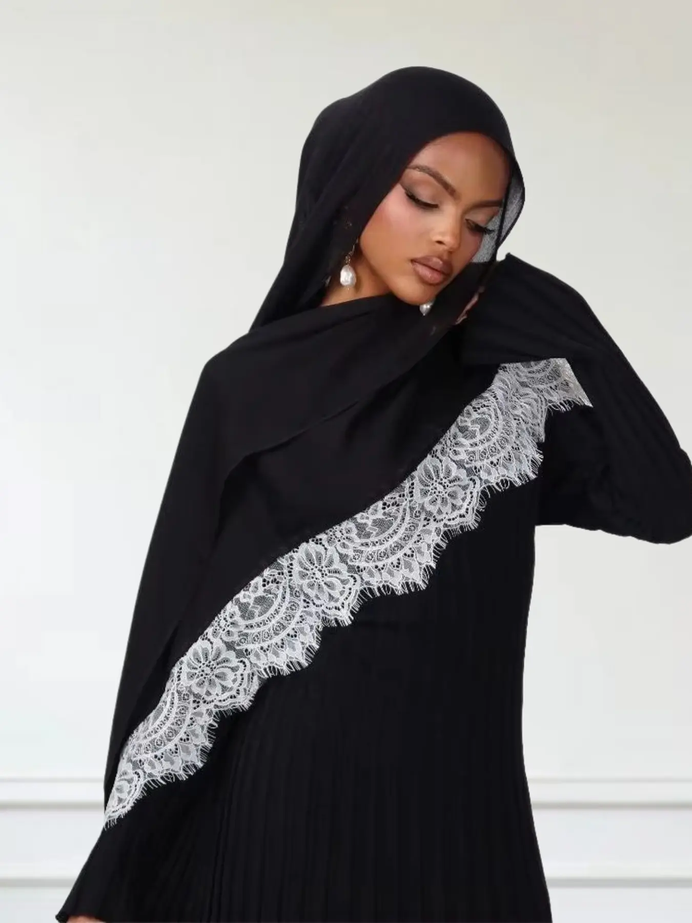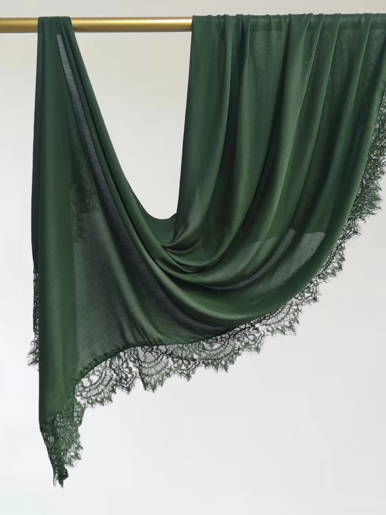 1-Piece Rayon Scarf with Lace Trim — Breathable Shawl, Head Wrap, and Hijab. Elegant Prayer Attire Accessory for Muslim Women (Middle Eastern, Western, and Arab Styles) — Suitable for Ramadan and Eid al-Adha.