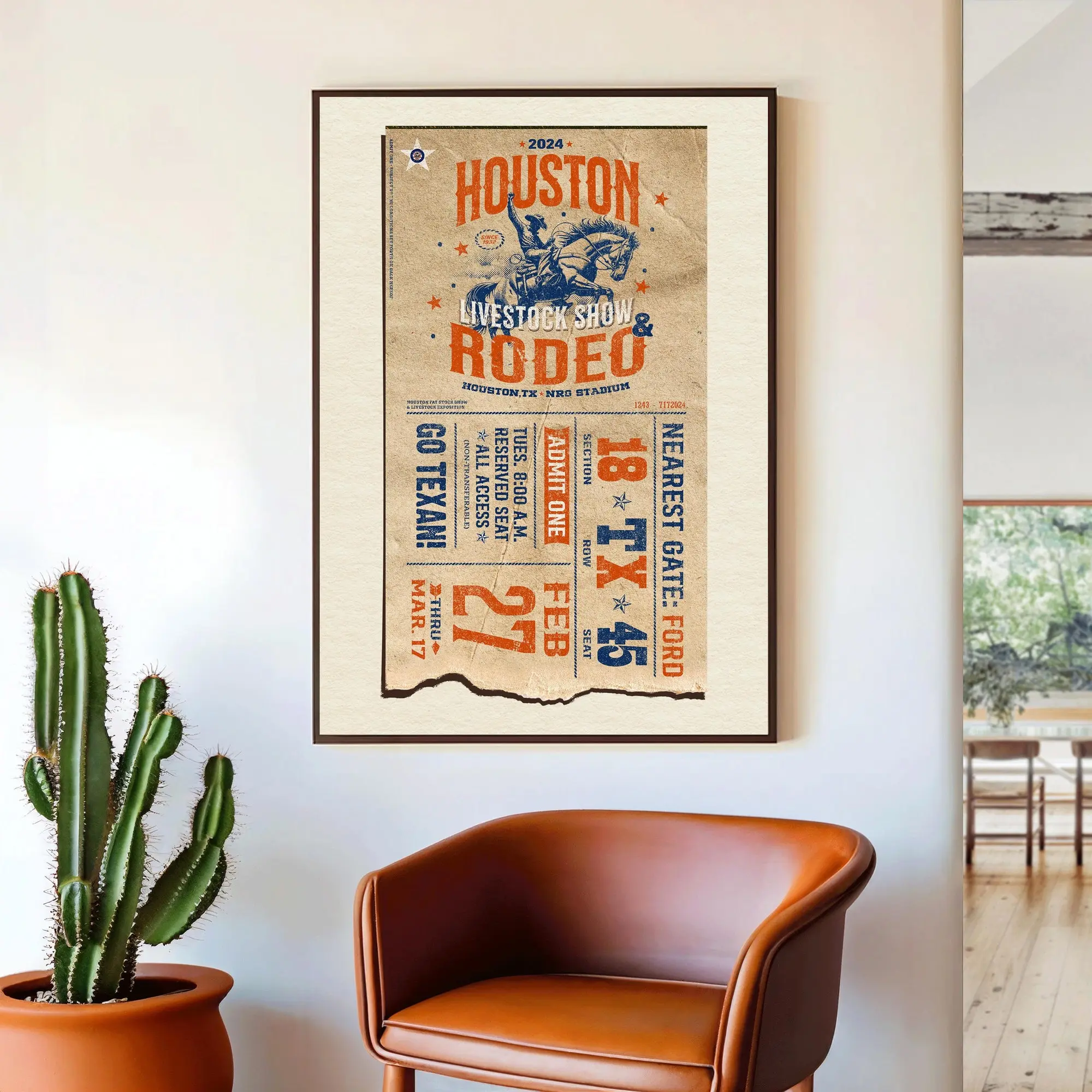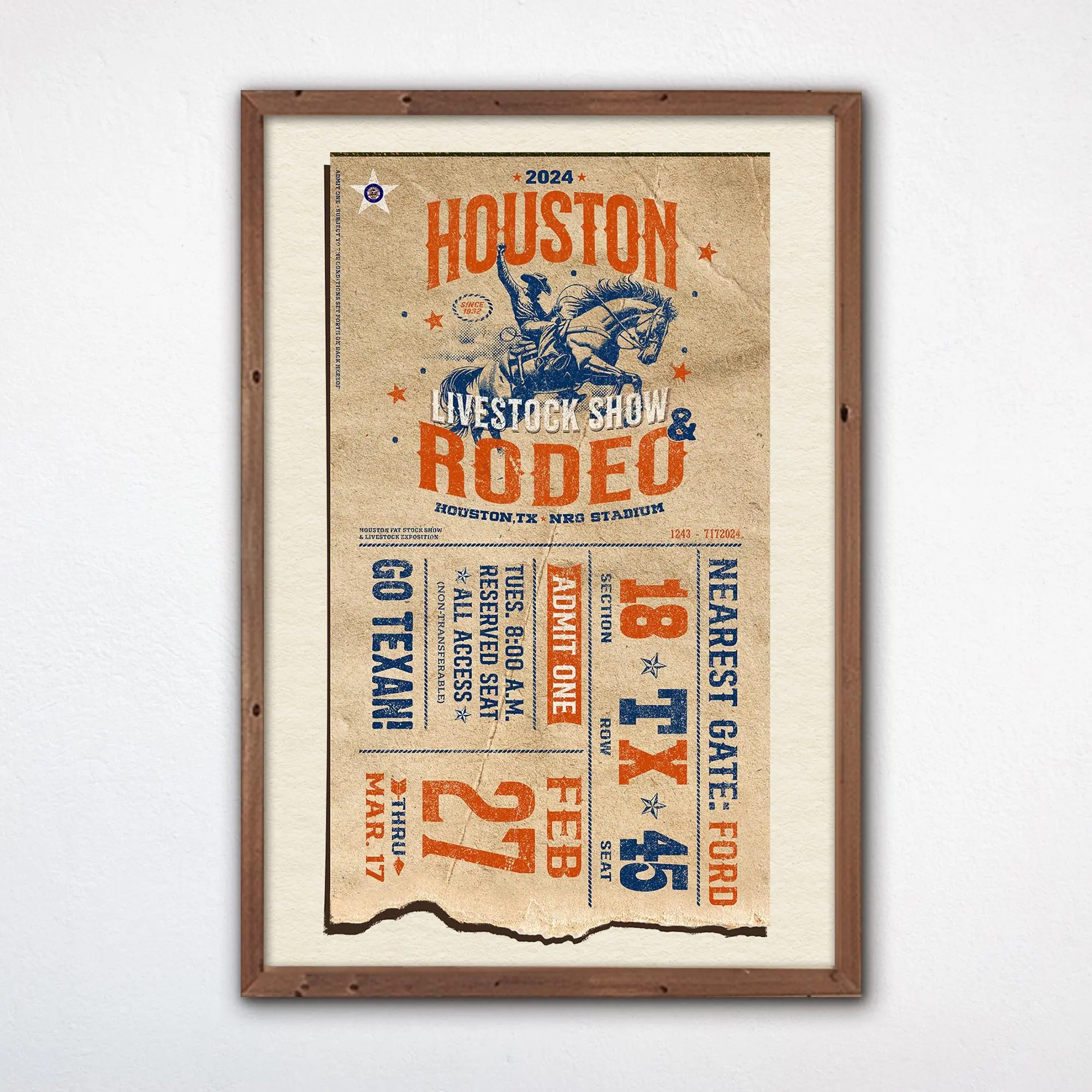 Vintage Houston Rodeo Art Print Rustic Western Decor