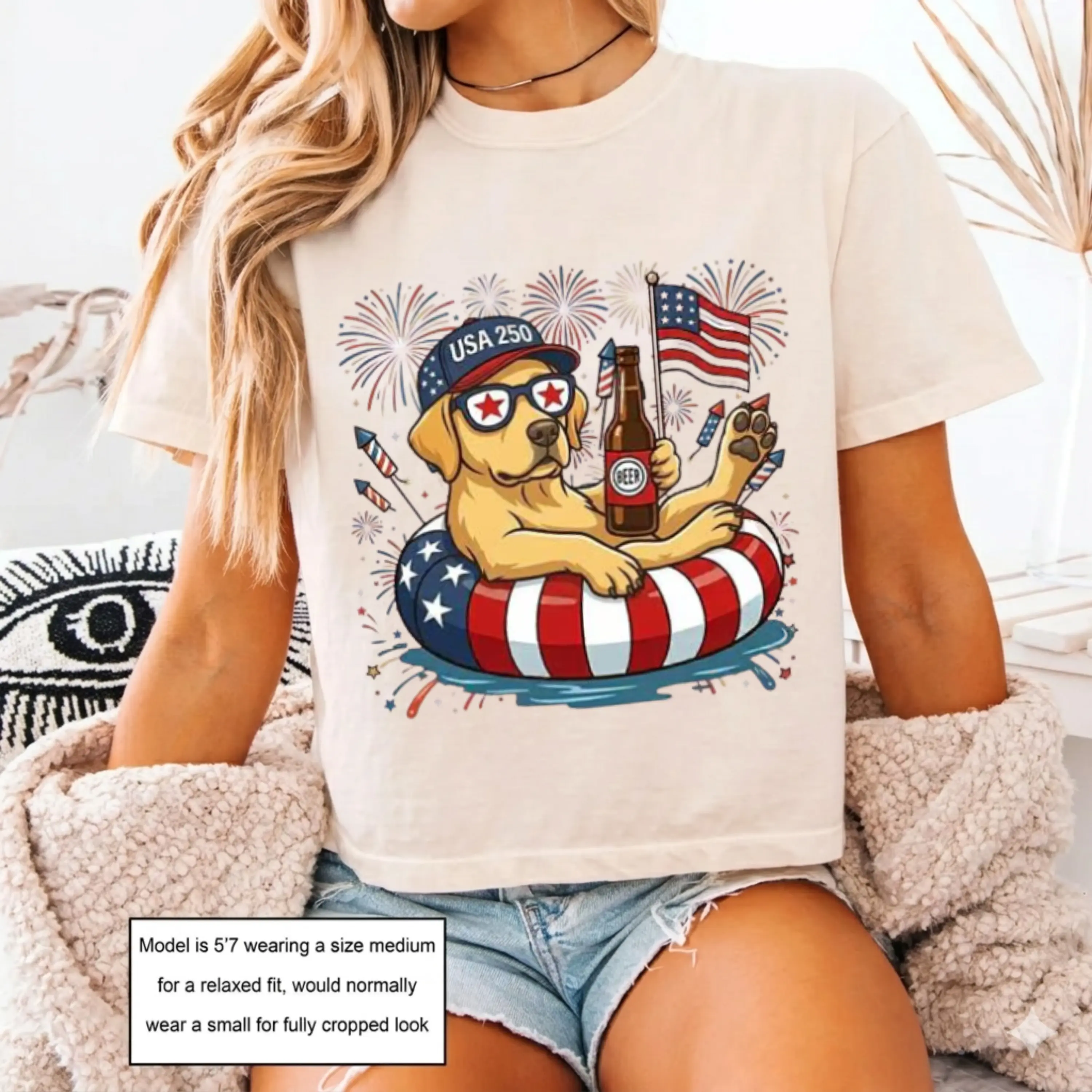 Comfort Colors Boxy Tee Yellow Lab Dog Graphic Tee Cropped Shirt Womens USA Flag Puppy Shirt 4th of July Vintage 90s Aesthetic Dog Lover Gift