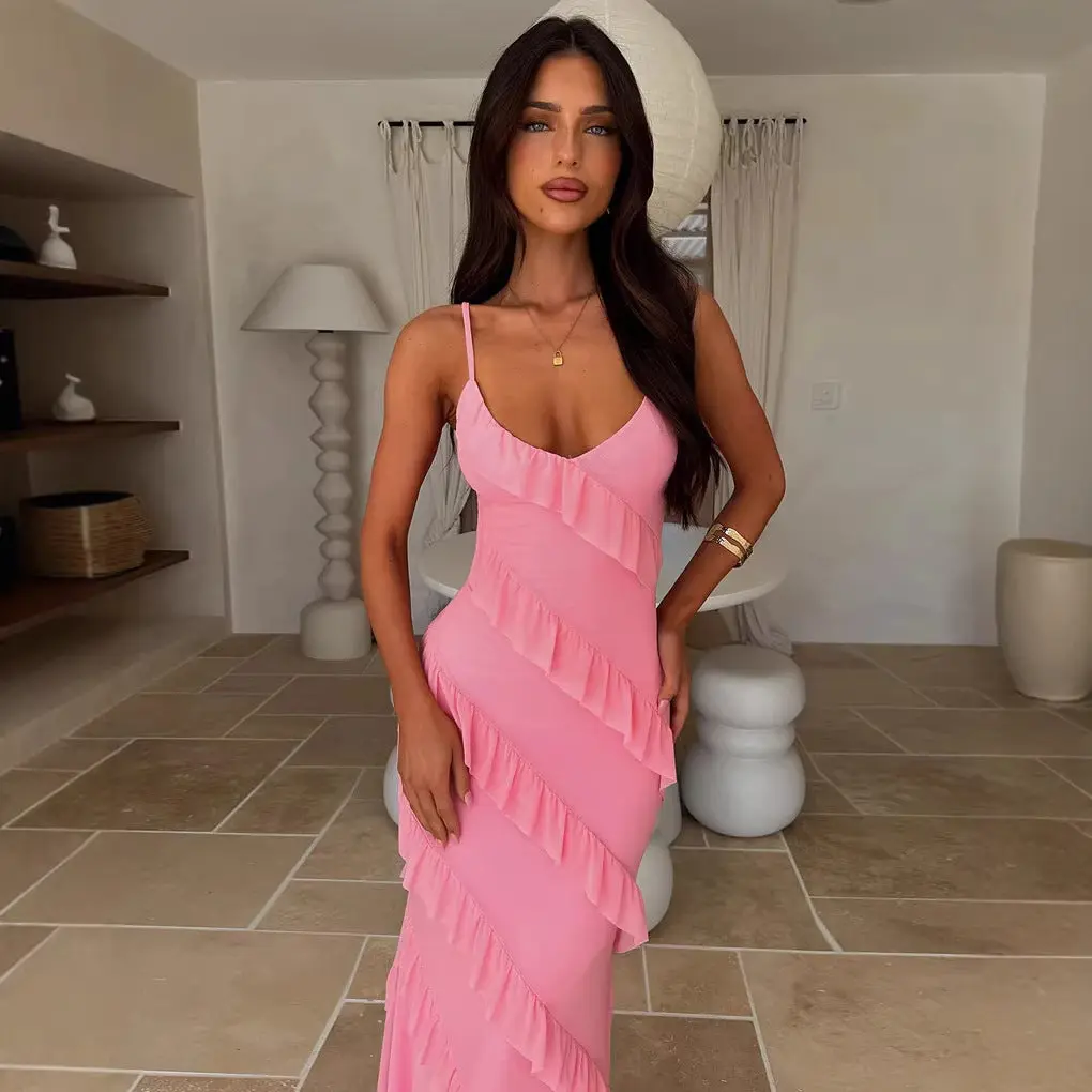 Backless Spaghetti-strap V-neck Dress With Side Slits