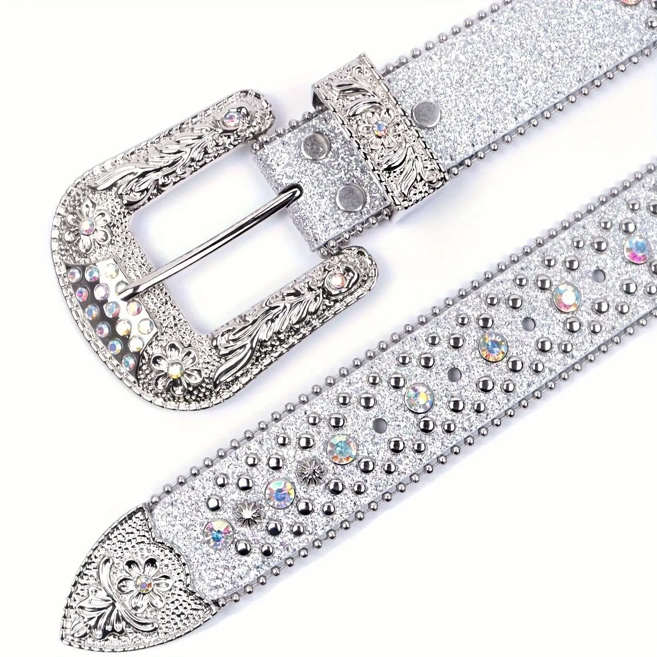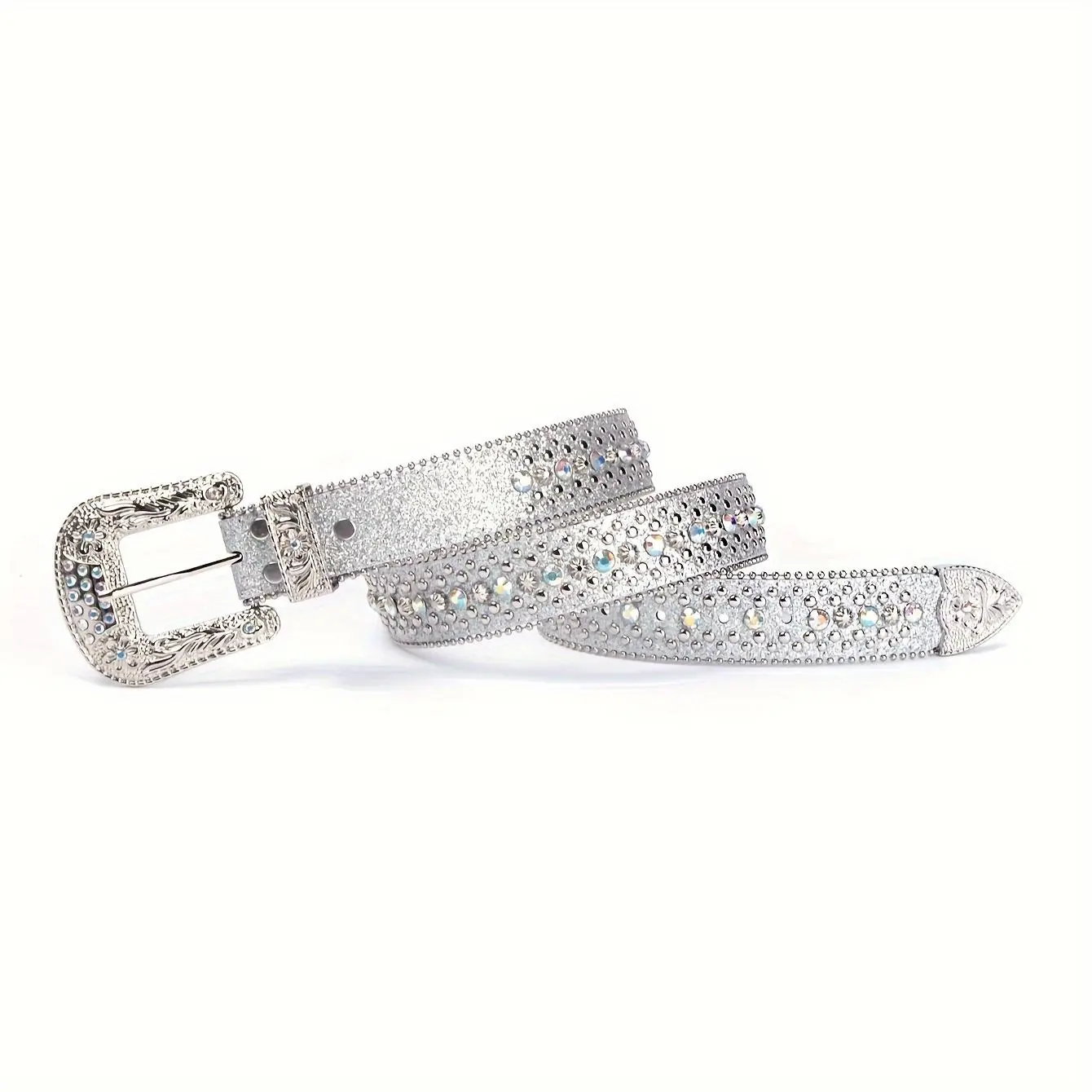 Rhinestone Belt Western Cowboy Cowgirl Shiny Crystal Diamond Embellished Luxury Belt