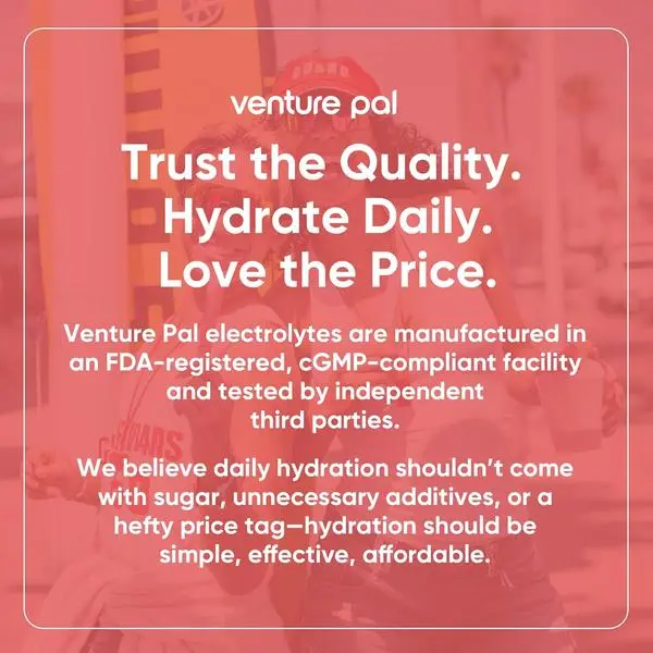·OUR BRAND PROMISE: At Venture Pal, we prioritize your wellness with scientifically backed ingredients. Trusted by hundreds of clinicians and verified by frontrowMD, our sugar free electrolytes powder packets deliver quality and effectiveness —And with our no-return refund policy, you can try them risk-free—even after use