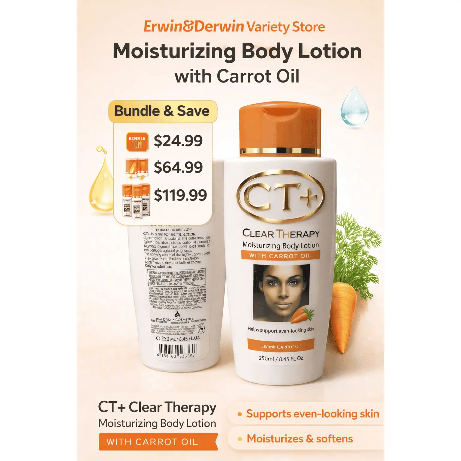 CT+ Clear Therapy Lotion – Even Tone Moisturizing Body Lotion with Carrot Oil (250ml)