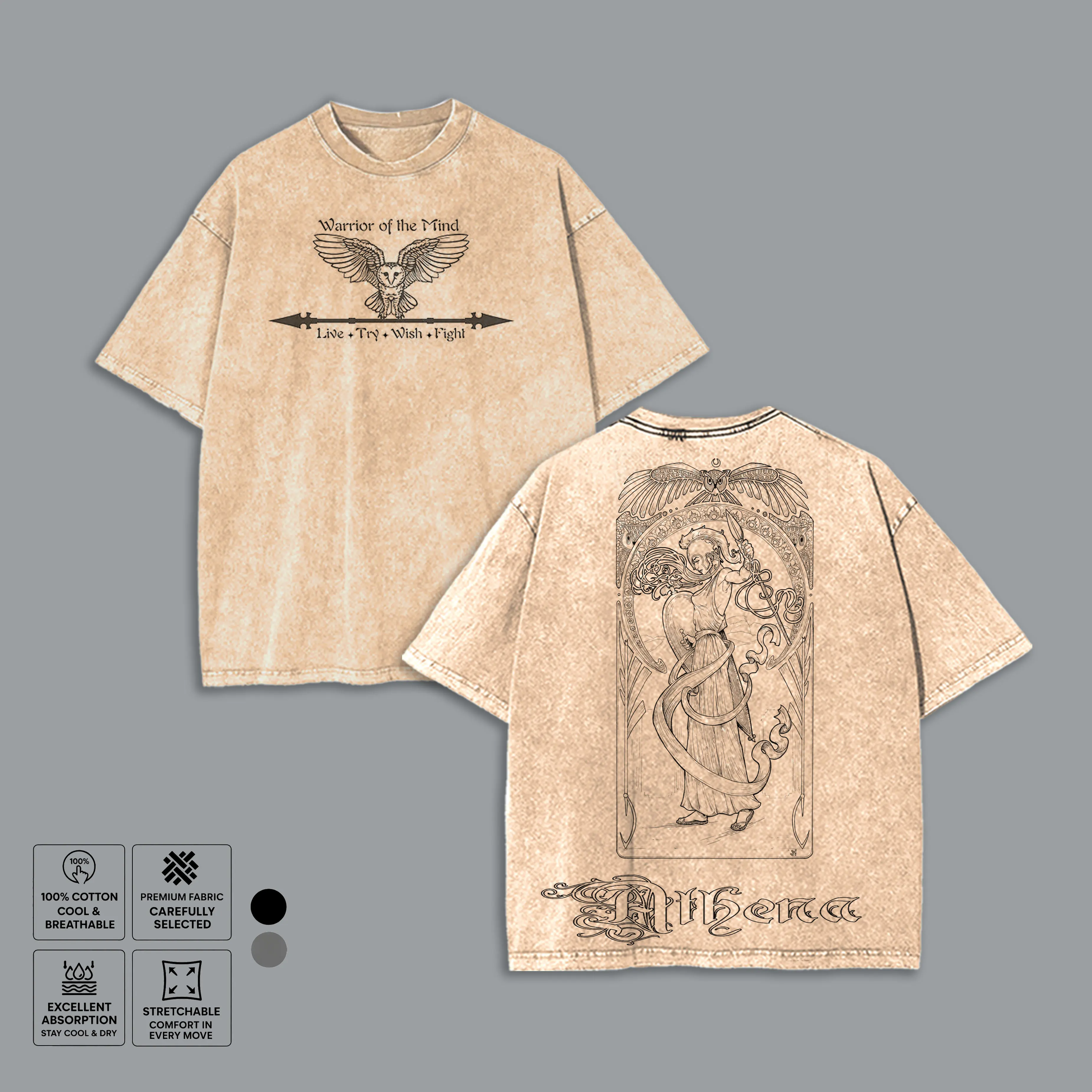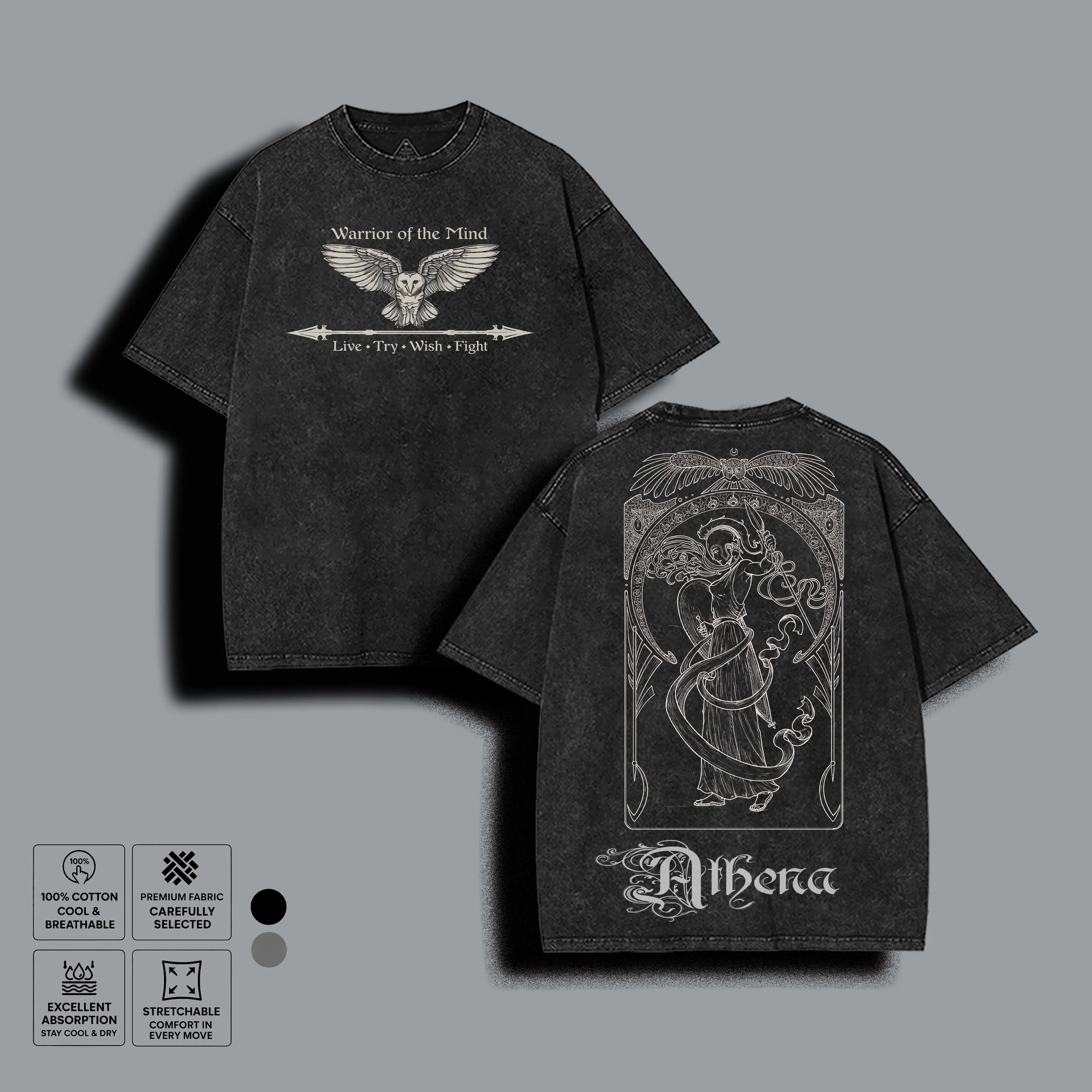 5. Vintage Athena Line Art Washed T-Shirt, Warrior of the Mind Aesthetic Graphic Tee, Unisex Loose Fit Men's Top, Greek Goddess Gift for History Fan