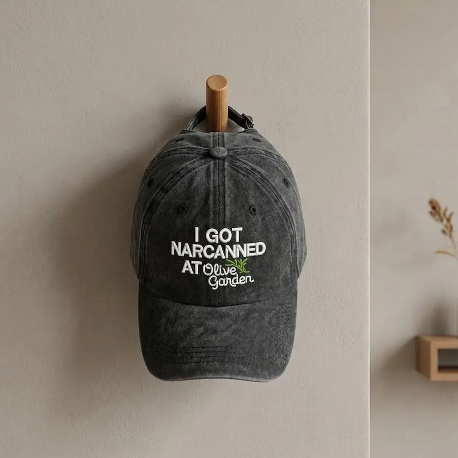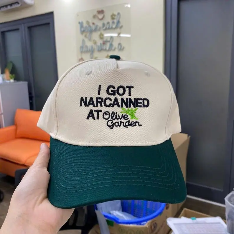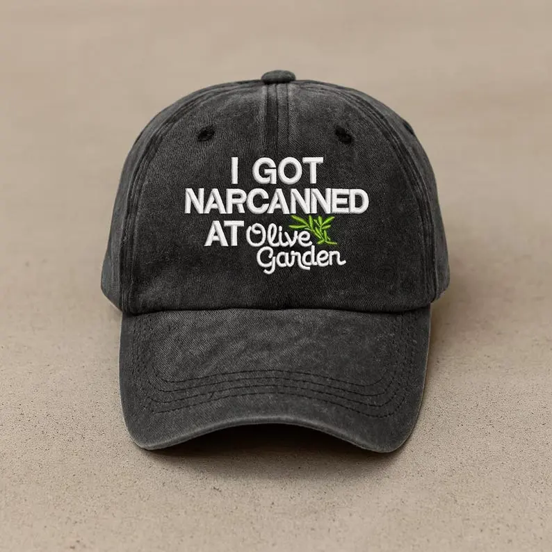 5. “I Got Narcanned at Olive Garden” Hat – Embroidered Funny Meme Cap, Dark Humor Baseball Hat, Viral Quote Hat