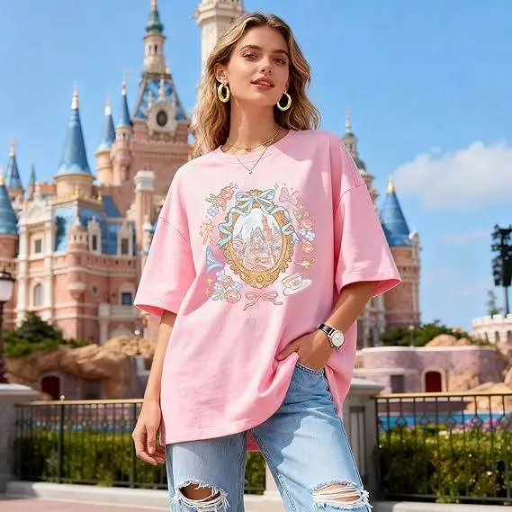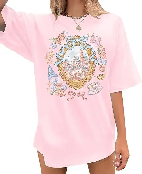 ·Style: Cute Magic Kingdom Shirts Shirt: Oversized Castle Graphic Tees ,Princess Castle Tshirt, Family Holiday Short Sleeve T Shirt,Casual Loose Summer Tees.