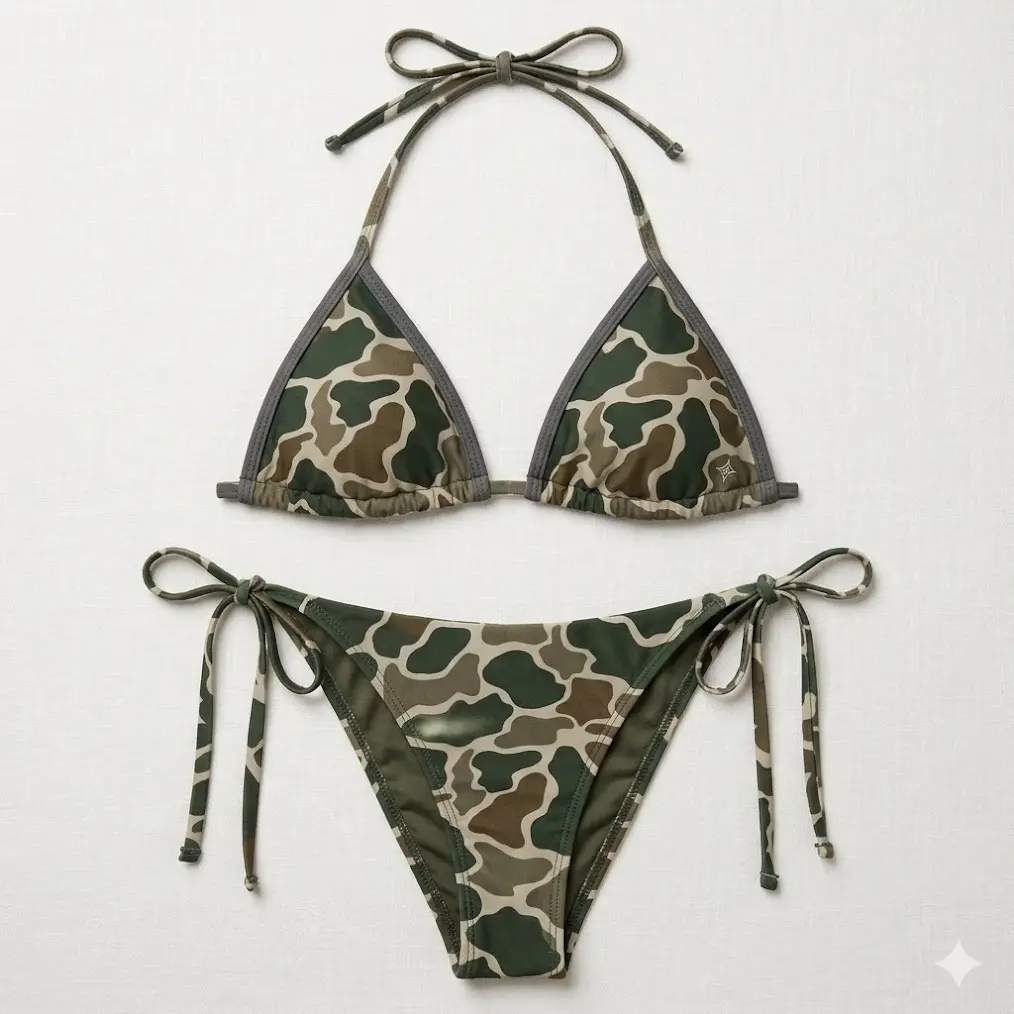 Strick Camo Design Couple Bikini Set – Sexy Triangle Tie Swimwear & Men’s Drawstring Beach Shorts, Summer Matching Outfit for Him & Her, Vacation Beachwear