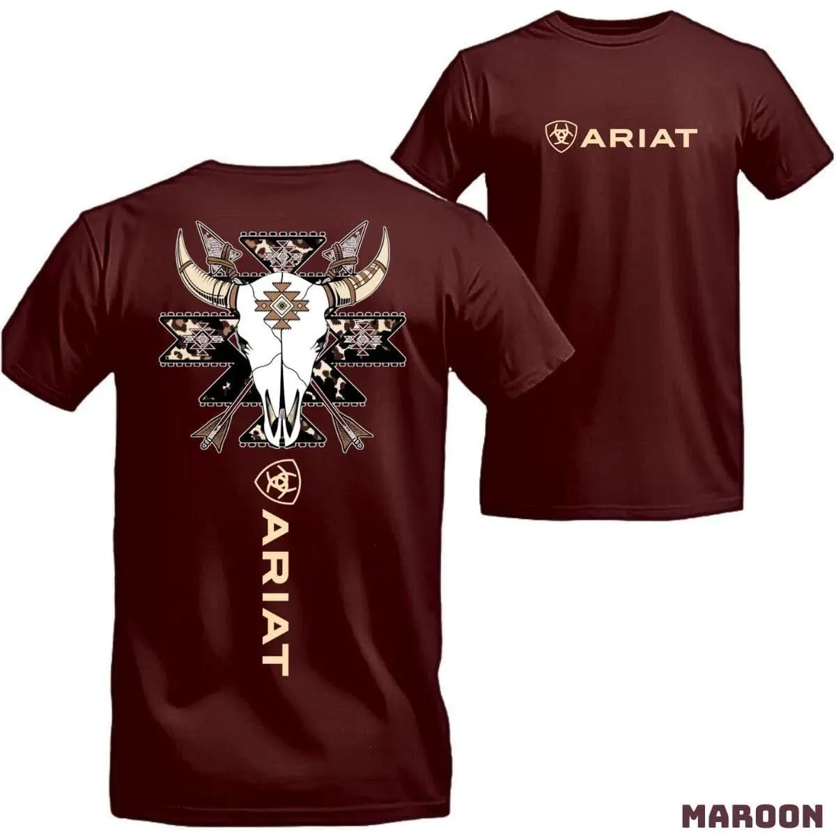 Ariat T-shirt - Bold Design Featuring A Cowboy-style Bull Skull With Intricate Native Patterns, Offering A Unique And Stylish Look, Perfect For Both Men And Women Unisex Menswear