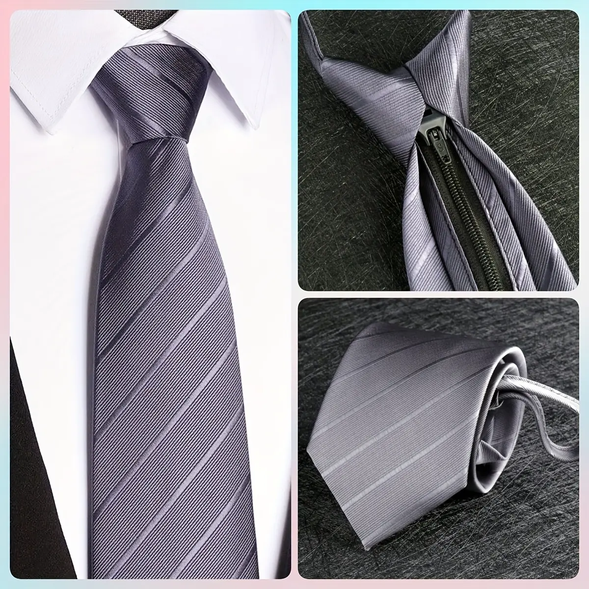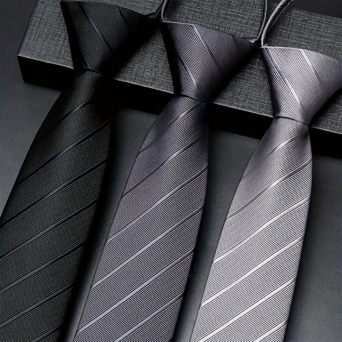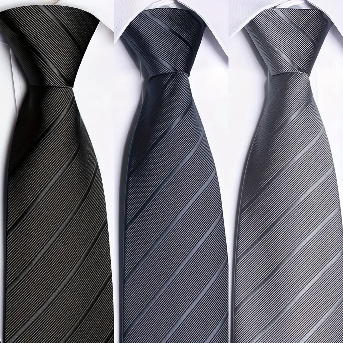 3-piece men's 1200-needle solid color polyester zippered striped tie set, classic retro business versatile ties suitable for work, interviews, banquets, etc. Black, gray, navy blue, and dark red ties are ideal gifts for male friends